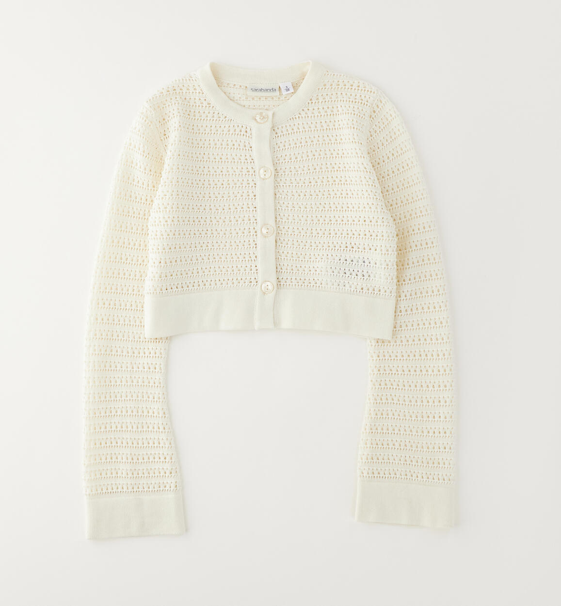 Sarabanda girls' cardigan made of 100% cotton tricot with a lace trim. Button closure.