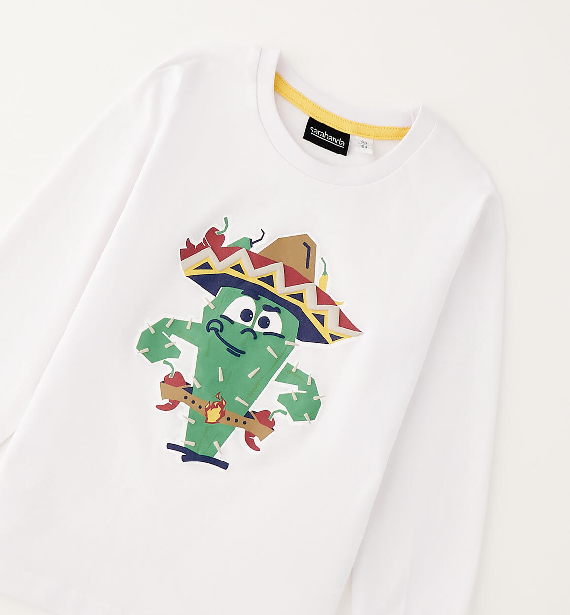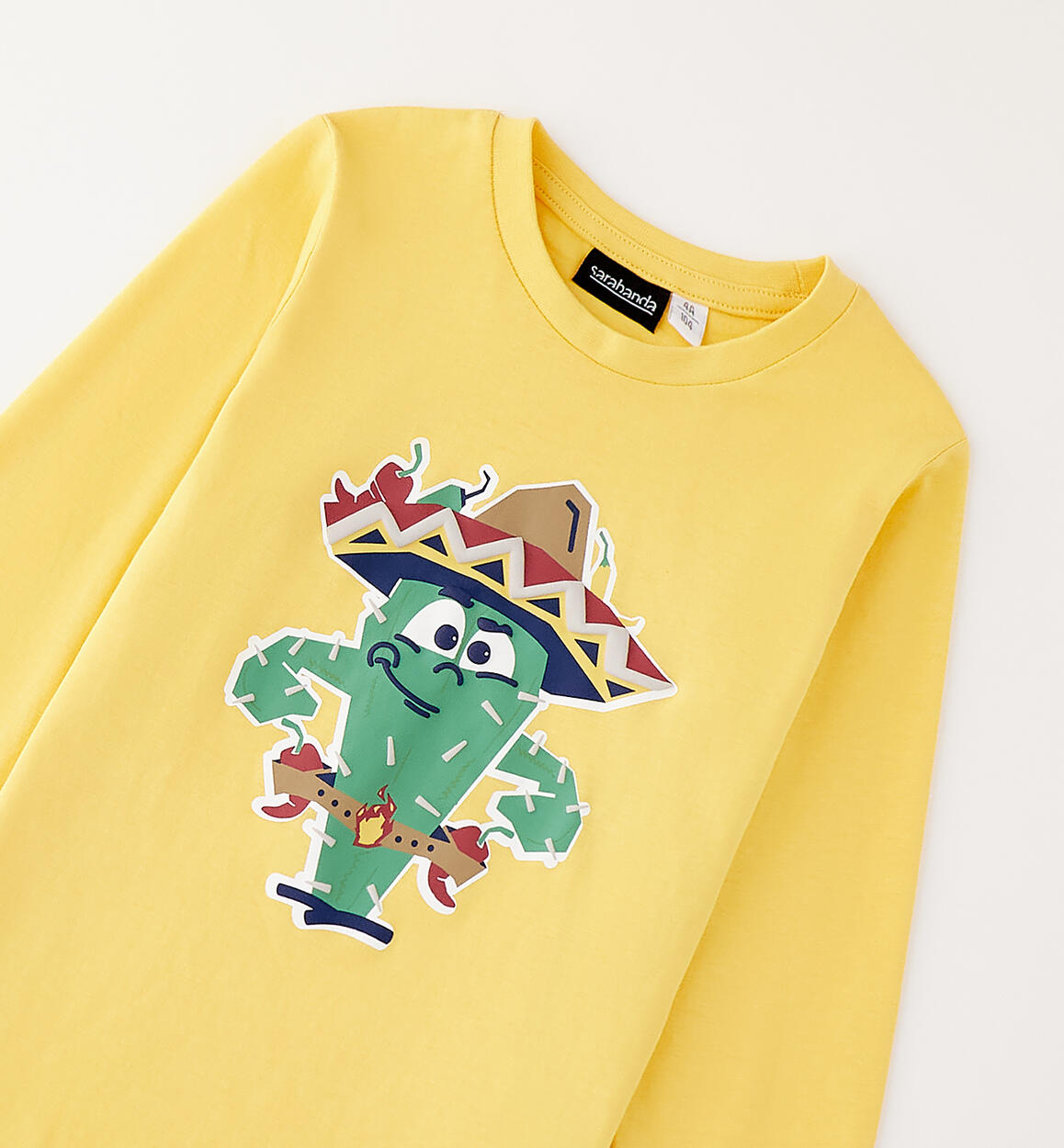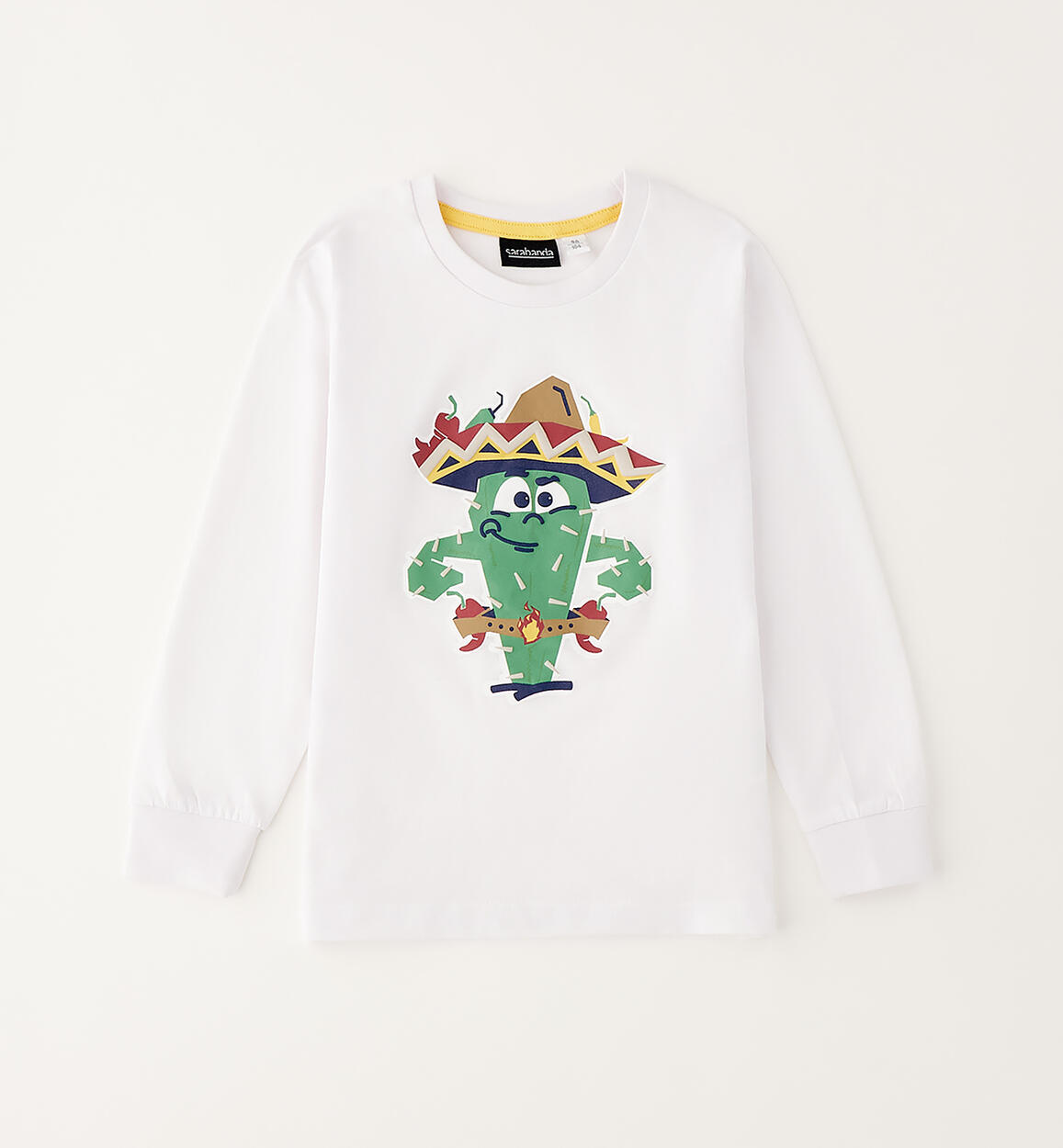 Sarabanda long-sleeved crew neck for children made of 100% cotton jersey with cuffs on the bottom of the sleeve and print with raised details