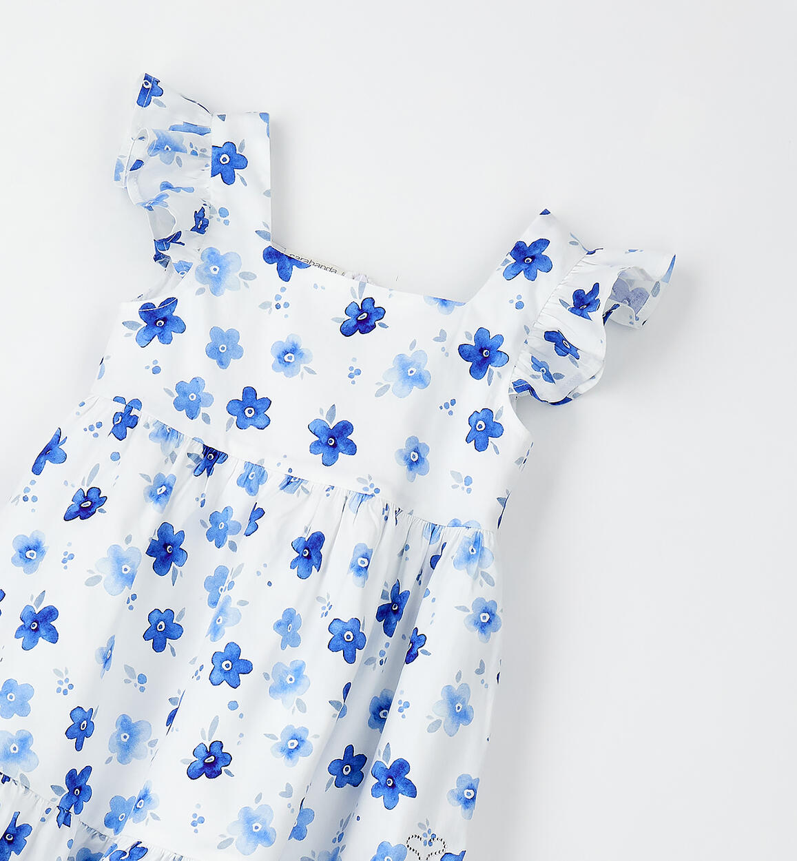 Sarabanda girls' dress made of 100% cotton satin with an all-over print and cotton lining. Knee-length. Back opening with an invisible zip.