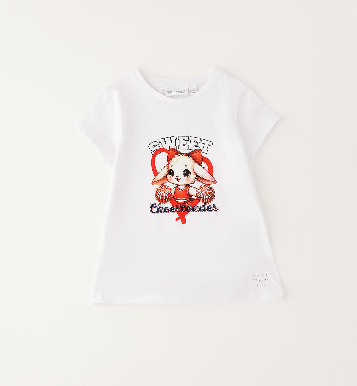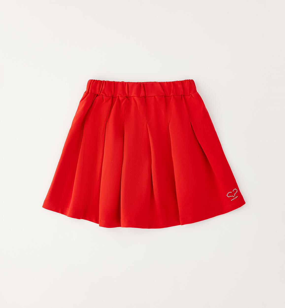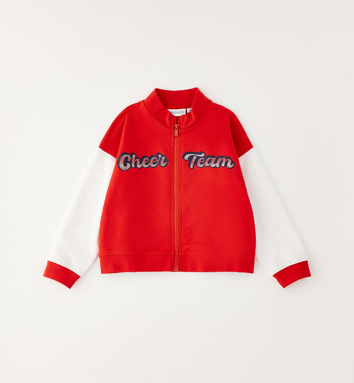Sarabanda three-piece set for girls in stretch cotton. Printed jacket with zip closure in stretch fleece. Pleated skirt with elastic waist and drawstring in stretch fleece. Stretch cotton jersey T-shirt with print on the front.
