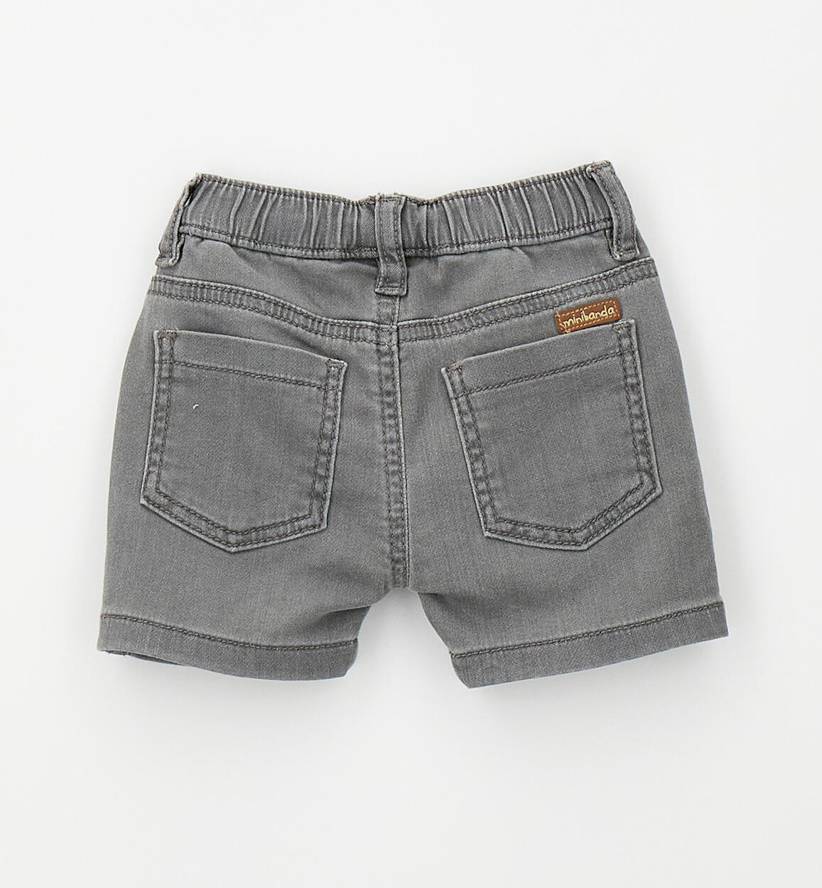 Minibanda stretch cotton knit denim shorts for babies. Featuring a mock opening, dropped crotch, and elastic waistband. By choosing our cotton products, you support Minibanda's commitment to the Better Cotton mission. This product is supplied through a mass balance system and may not contain Better Cotton. Learn more at bettercotton.org/massbalanceComposition