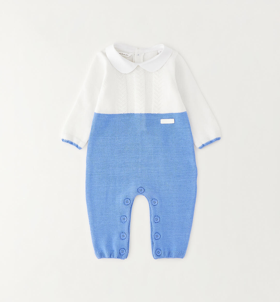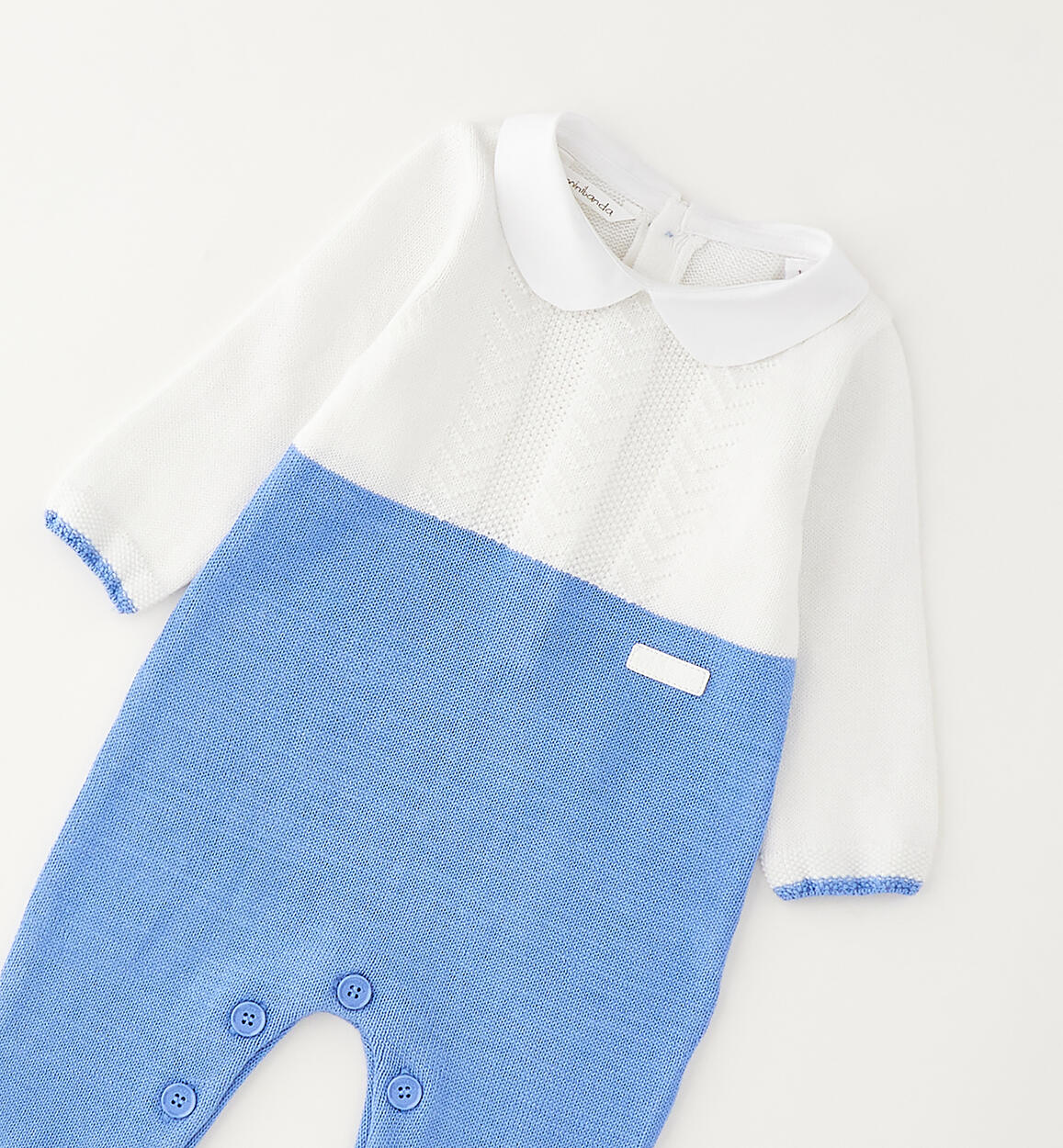 Minibanda footless onesie for newborns made of soft two-tone tricot. The style features an opening at the back and under the crotch with buttons for easy changing and dressing. By choosing our cotton products, you support Minibanda's commitment to the Better Cotton mission. This product is supplied through a mass balance system and may not contain Better Cotton. Learn more at bettercotton.org/massbalance
