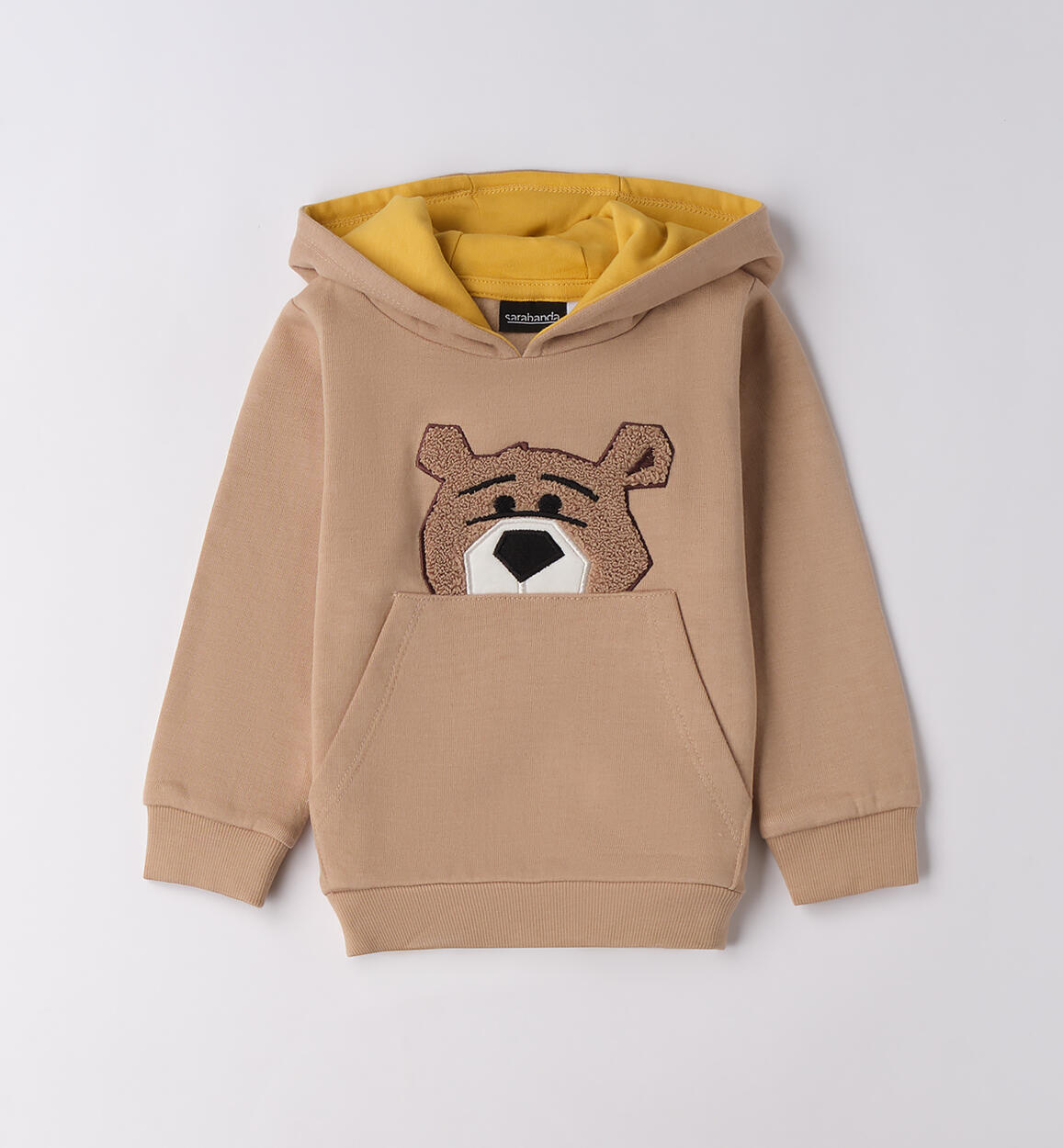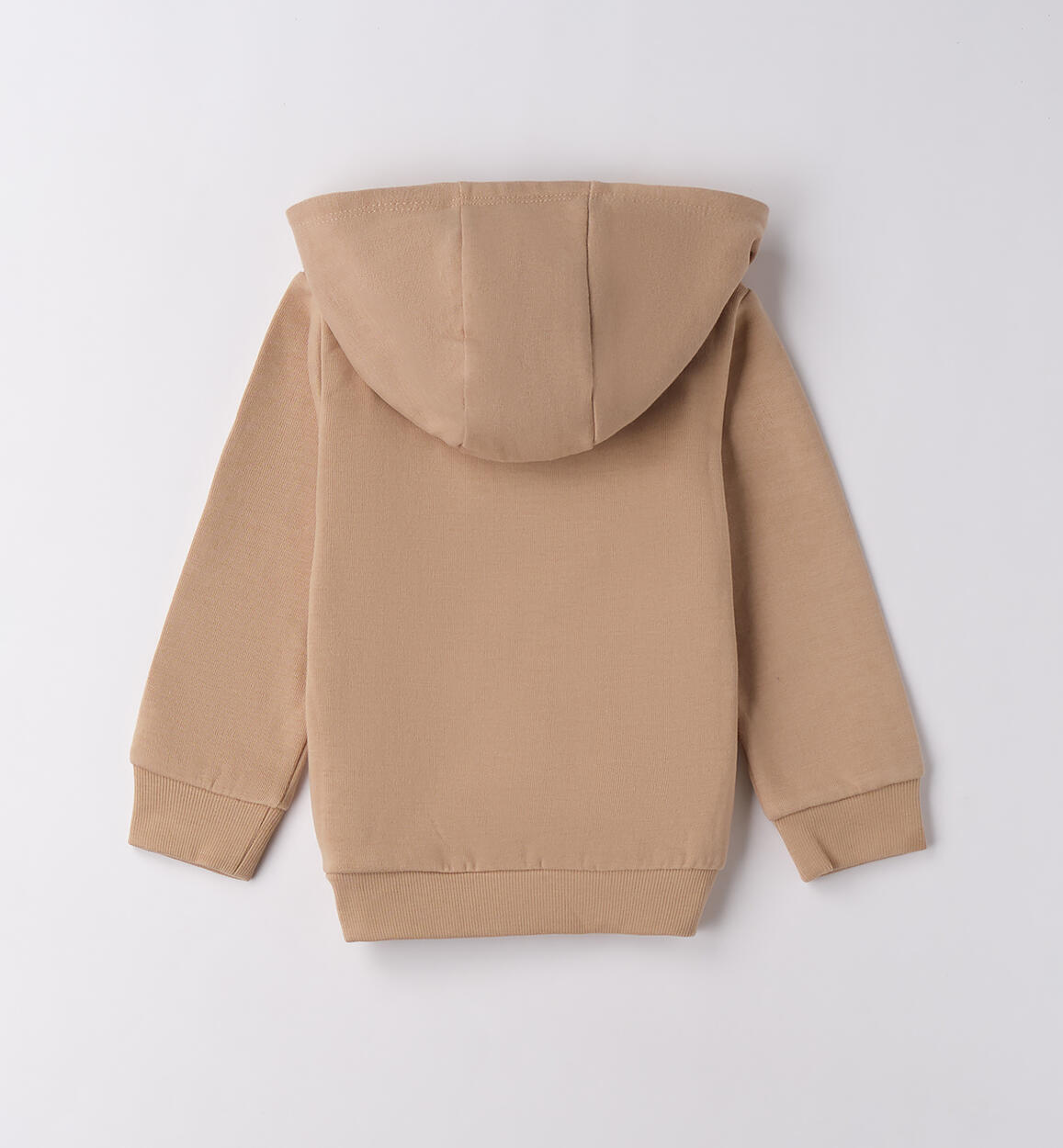 Sarabanda sweatshirt for boys aged 9 months to 8 years made of winter fleece with brushed exterior. Model with interlock-lined hood, kangaroo pocket, and terry embroidery.Composition