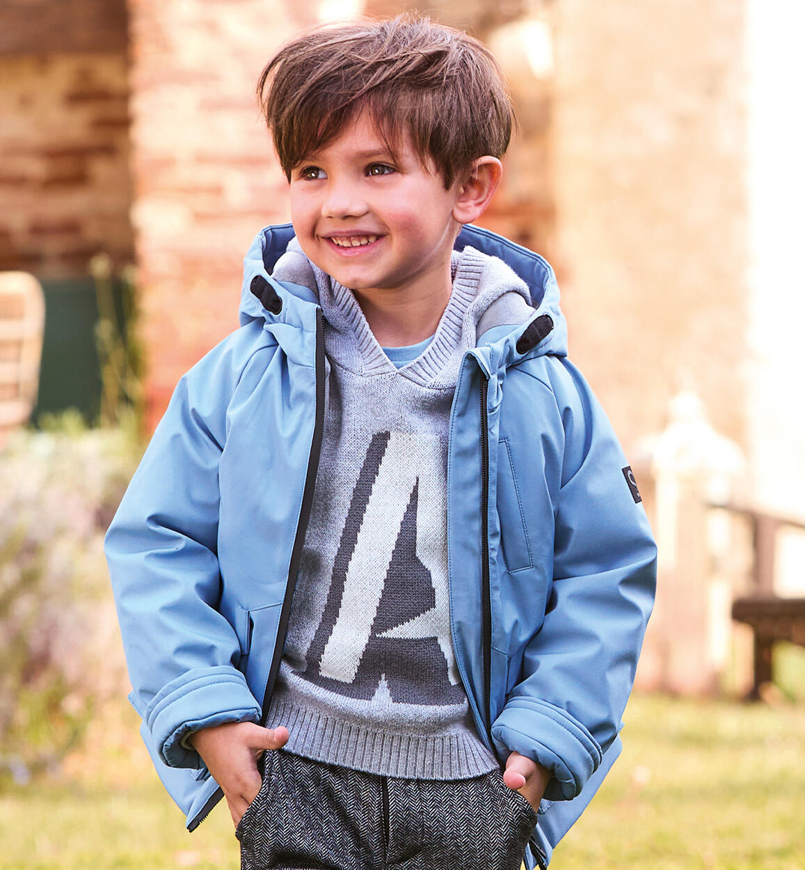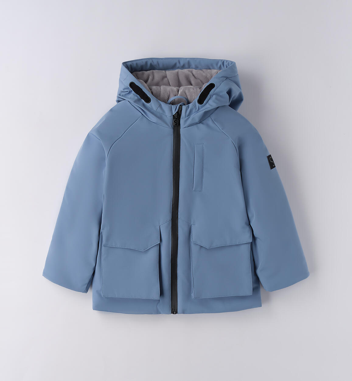 Sarabanda jacket for boys aged 9 months to 8 years made of technical fabric with partially lined interior in warm and soft material. Padded with wadding. Model with hood and zip opening. Inner pocket and front pockets. This product contains no animal-derived materials. Animal Free is a trademark of LAV www.animalfree.info