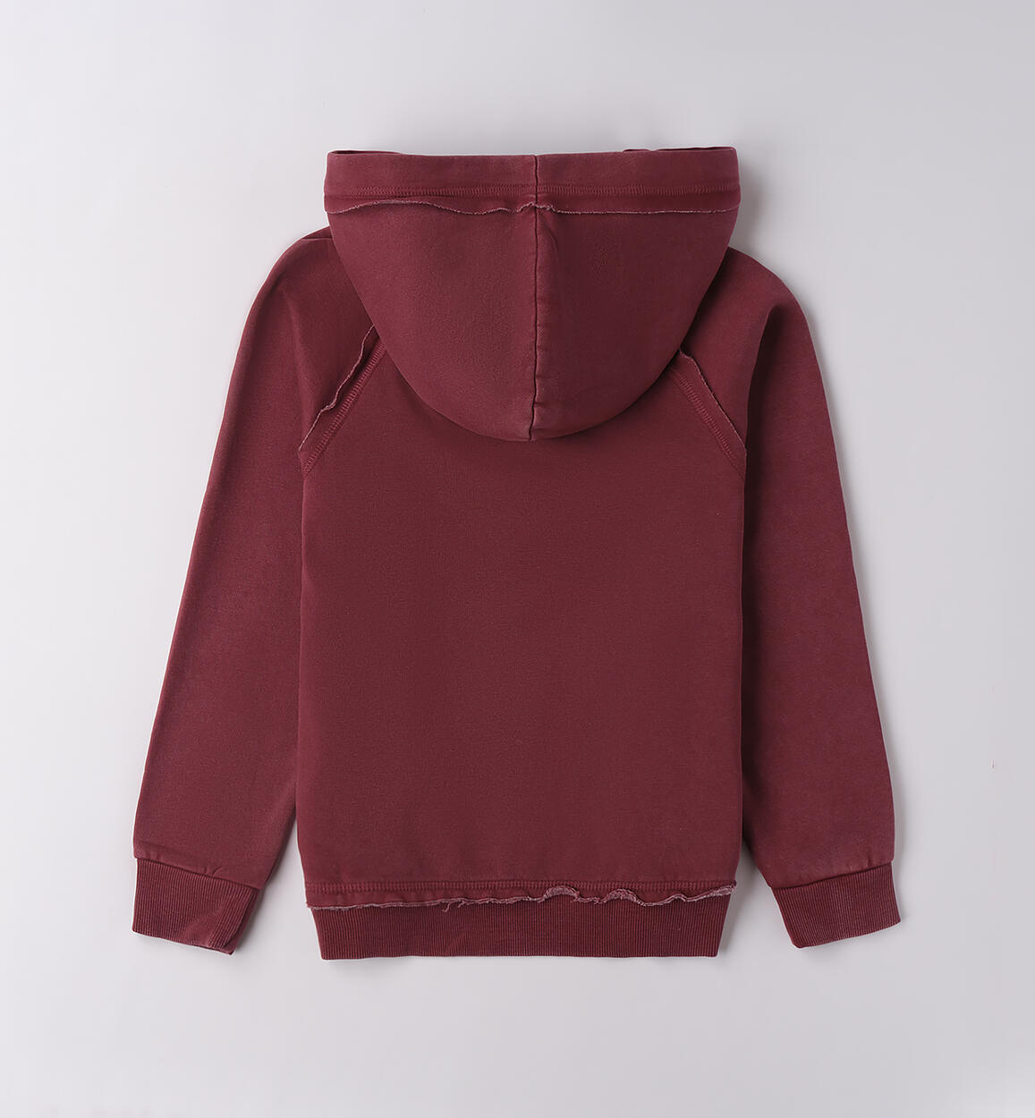 Sarabanda sweatshirt for boys aged 8 to 16 years made of brushed winter fabric. Raglan sleeves. Raw-cut details. Model with hood, prints, embroidery, and side pockets.