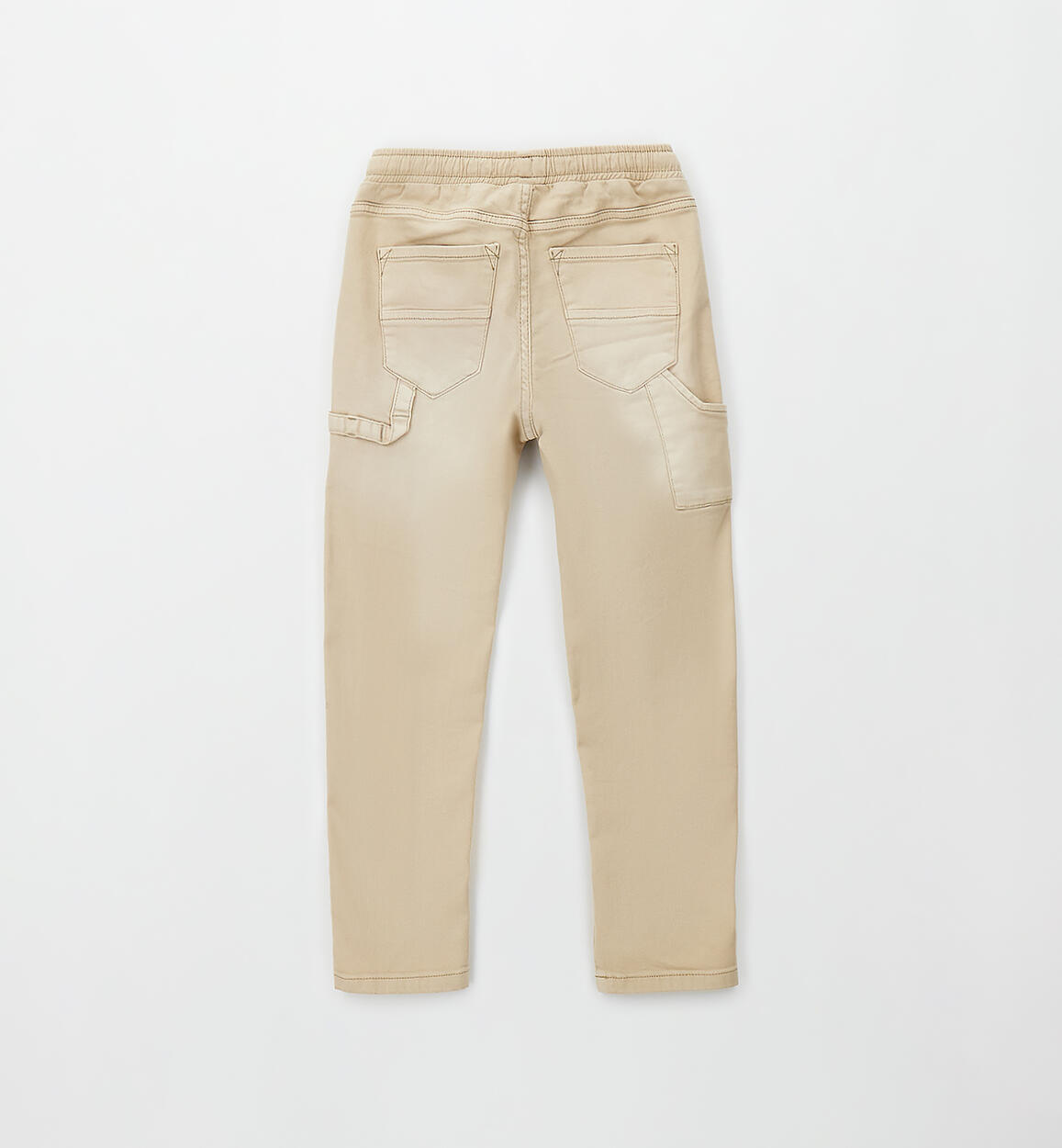 Sarabanda boys' long trousers made of stretch cotton twill with rips. Elastic waist with drawstring. Loose fit.