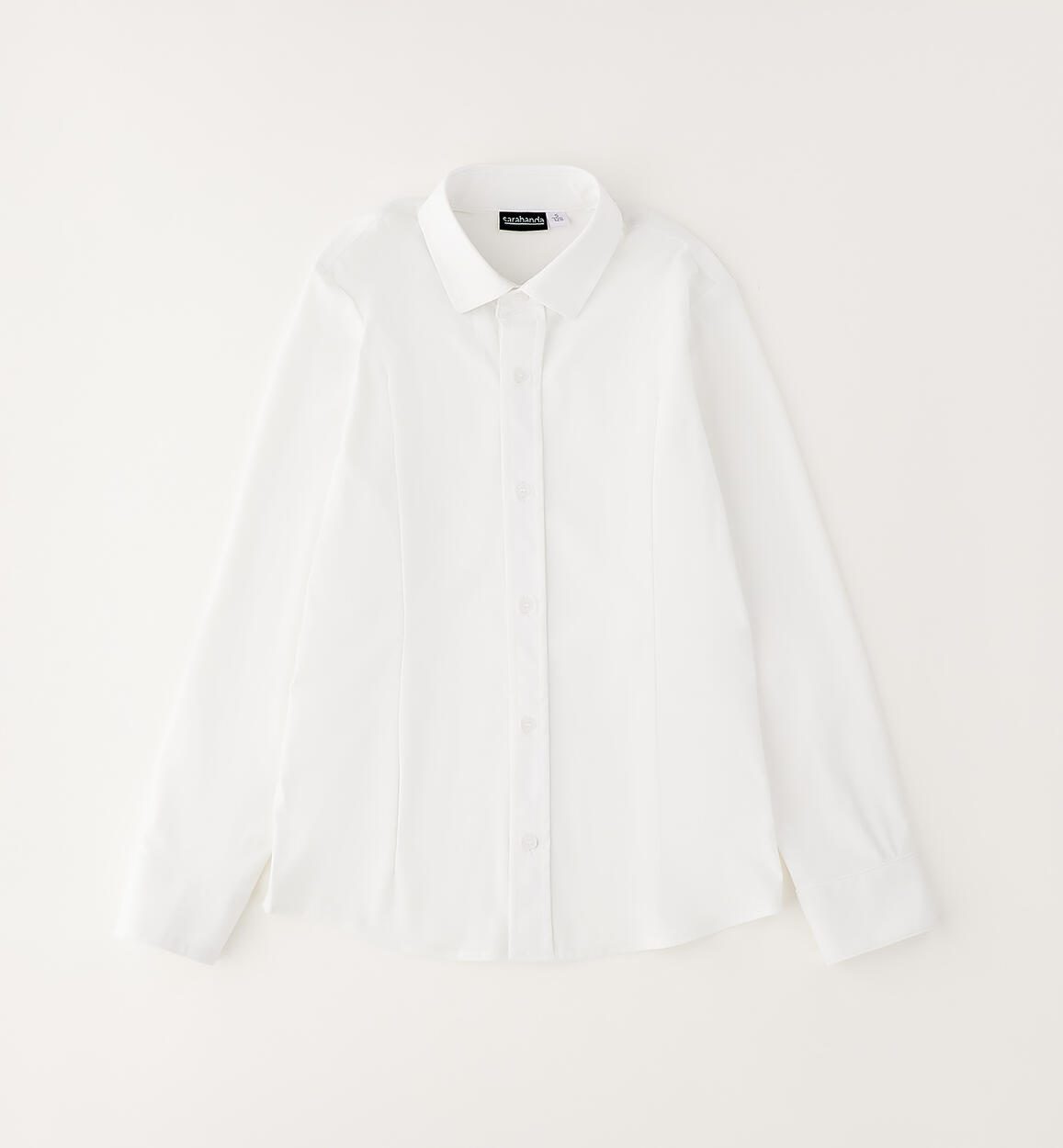 Sarabanda boys' long-sleeved shirt made of shiny, light poly-comfort fabric with a button closure. Classic style. The shirt is part of the Sarabanda Premium collection, designed for more formal occasions.