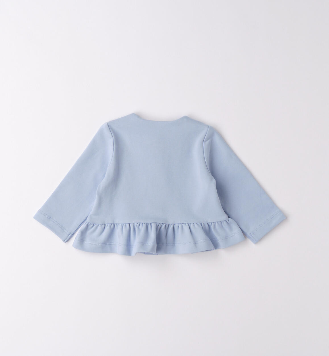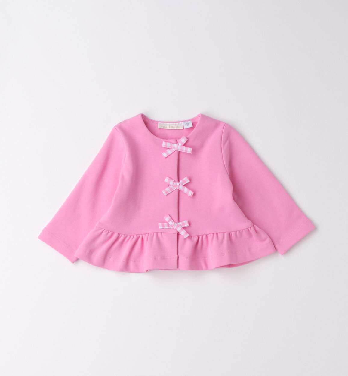 Minibanda baby girl's sweatshirt made of stretch cotton fleece. The jacket features ruffles at the bottom and a hidden snap button closure. Small bows are appliquéd. By choosing our cotton products, you support Minibanda's commitment to the Better Cotton mission. This product is supplied through a mass balance system and may not contain Better Cotton. Learn more at bettercotton.org/massbalanceComposition