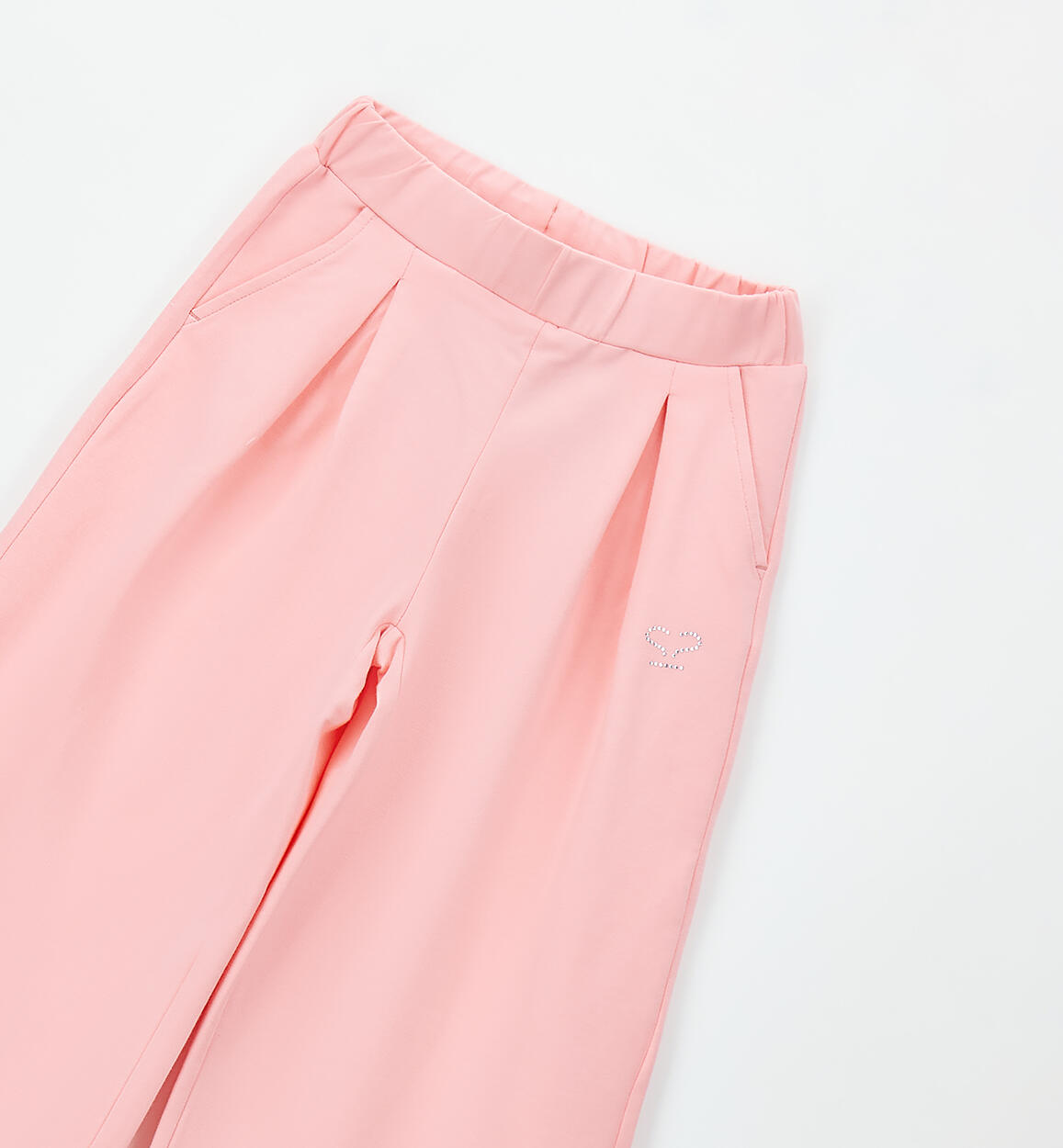 Sarabanda girls' stretch cotton fleece long trousers. Elastic waist with drawstring. Rhinestone logo. Cropped fit.