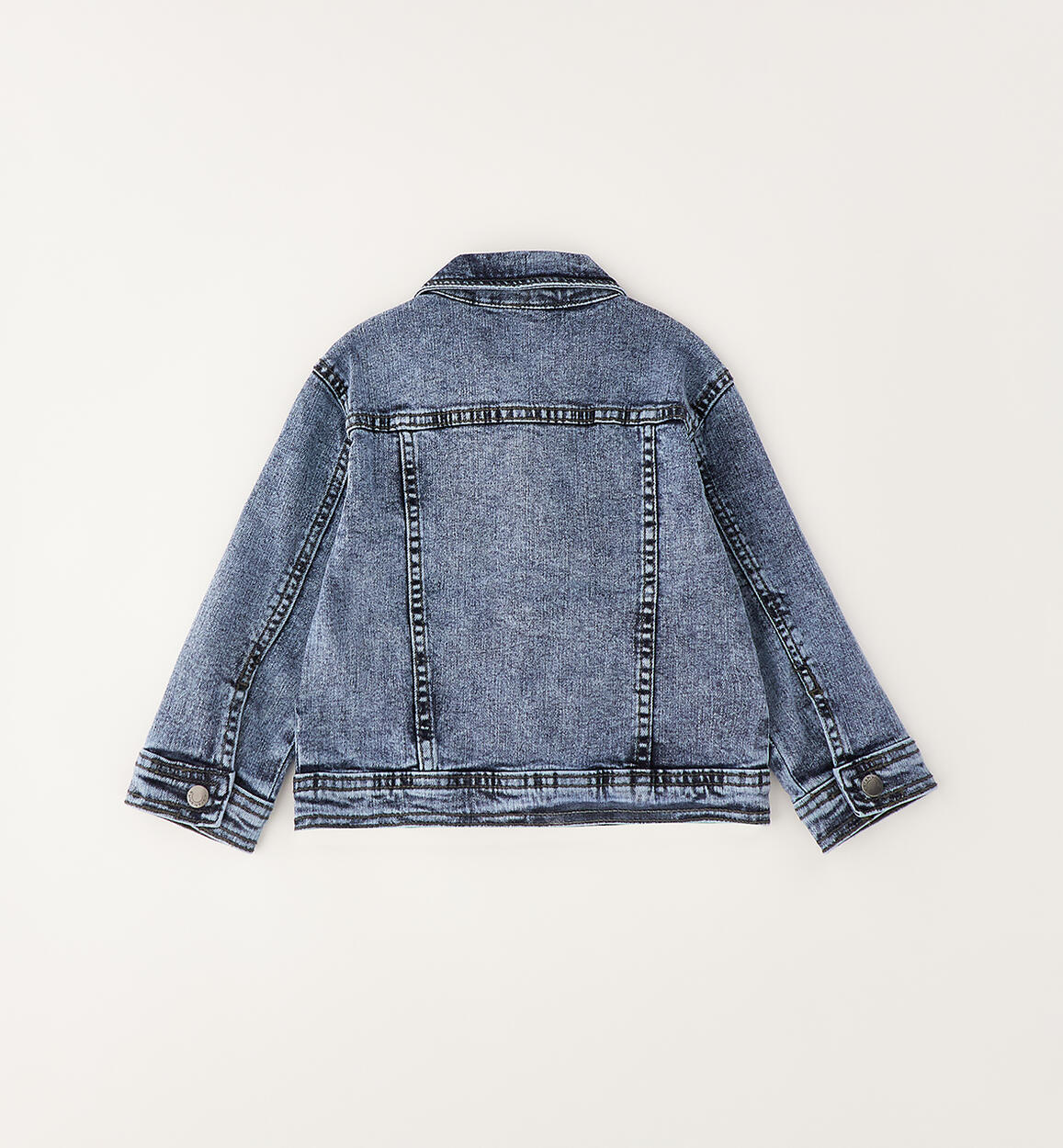 Sarabanda boys' jacket made of stretch cotton denim with pockets and snap button closure. Slightly oversized fit.