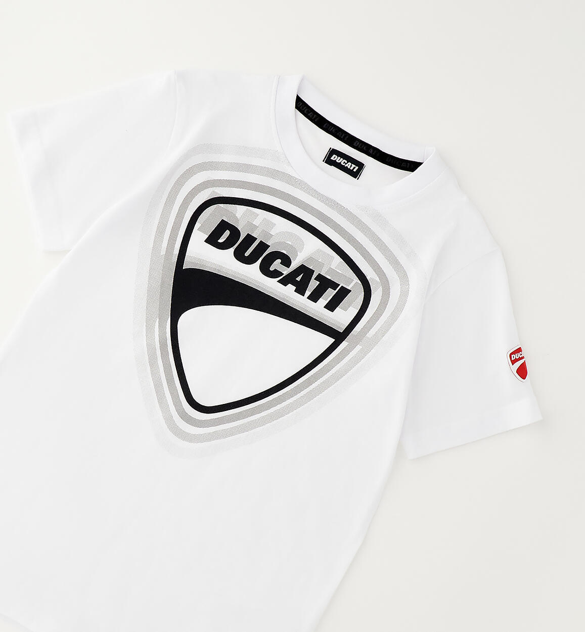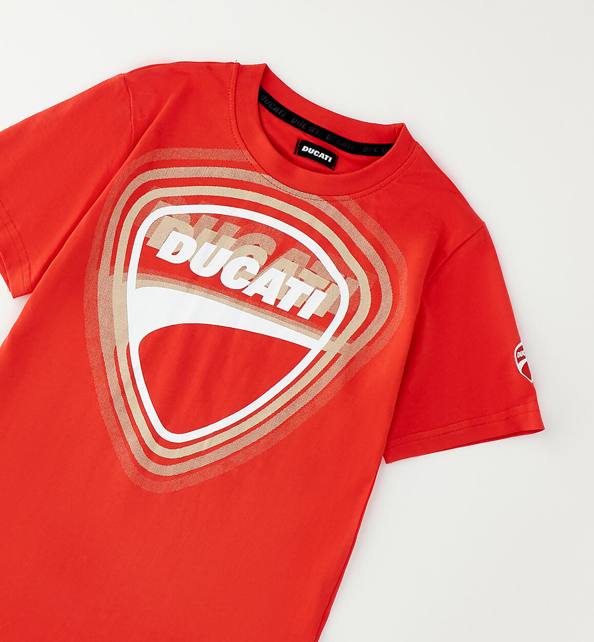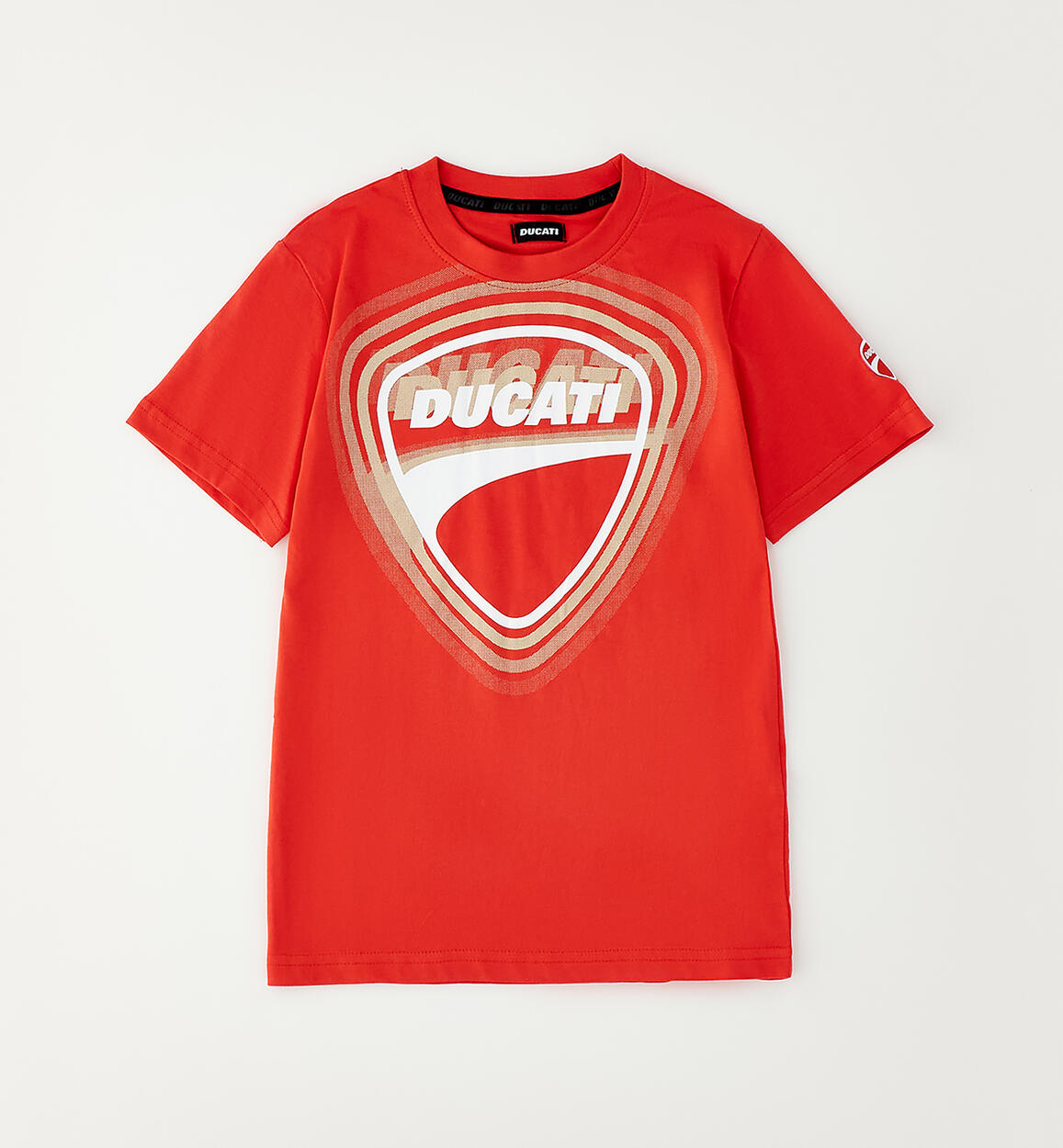 Ducati boys' T-shirt made of 100% cotton jersey with a print on the front and back. By choosing our cotton products, you support our investment in the Better Cotton mission. This product is supplied through a mass balance system and may not contain Better Cotton. Learn more at bettercotton.org/massbalance