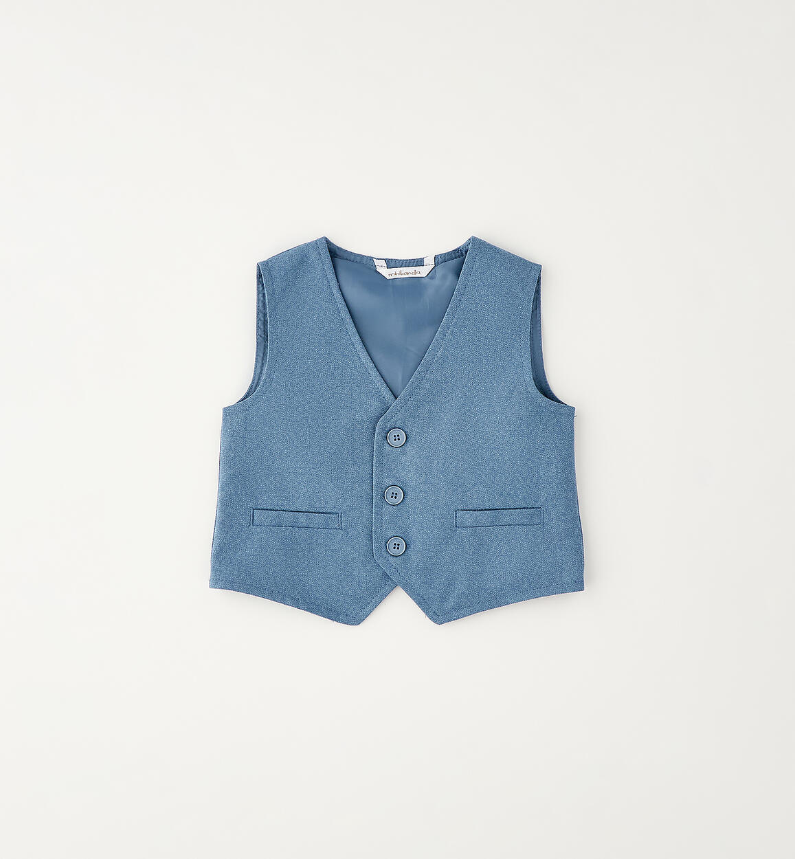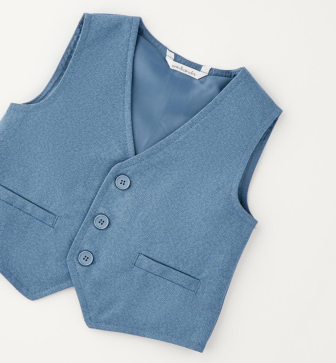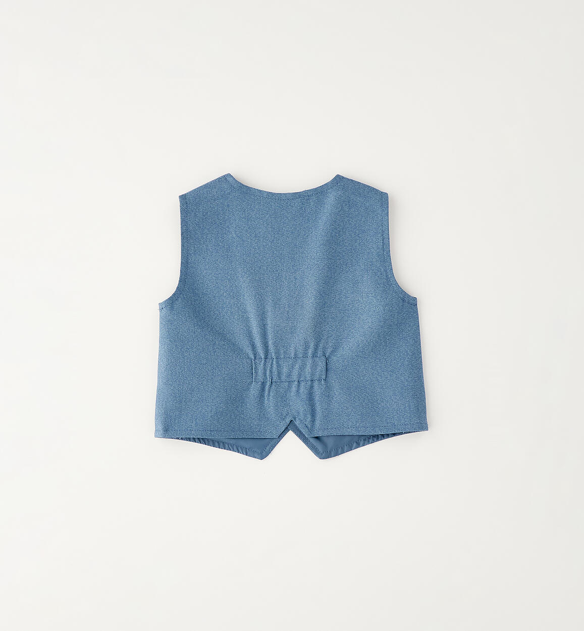Minibanda elegant baby vest made of stretch fabric with a button opening and a half-belt at the back. Fake pockets on the front.Composition