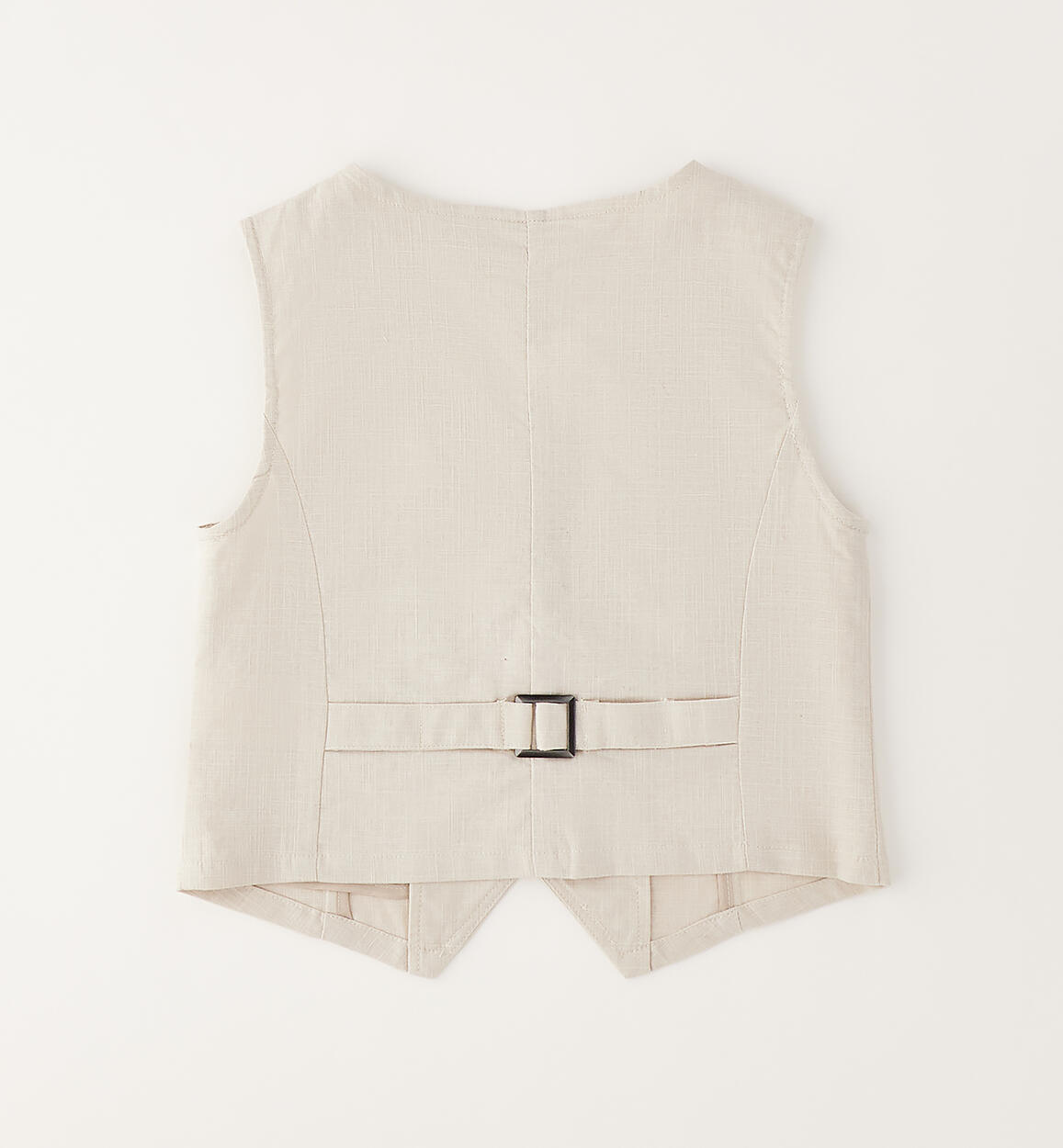 Sarabanda boys' vest made of linen and cotton with a faux pocket. It opens with buttons and has a half-belt at the back. This style is part of the Sarabanda Premium collection, designed for more formal occasions.