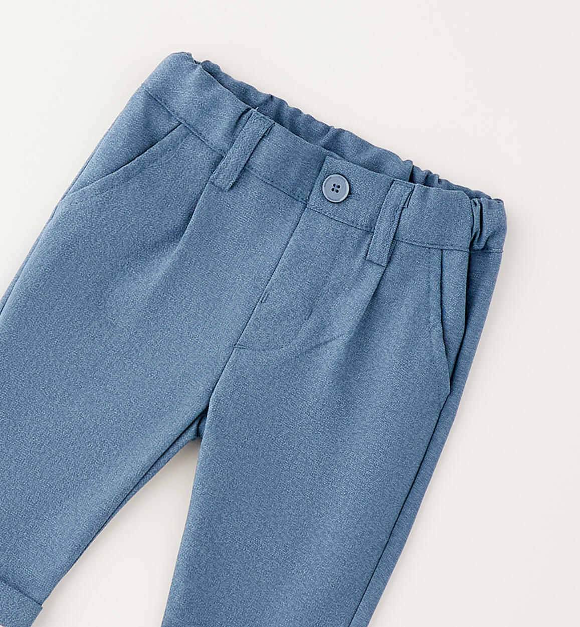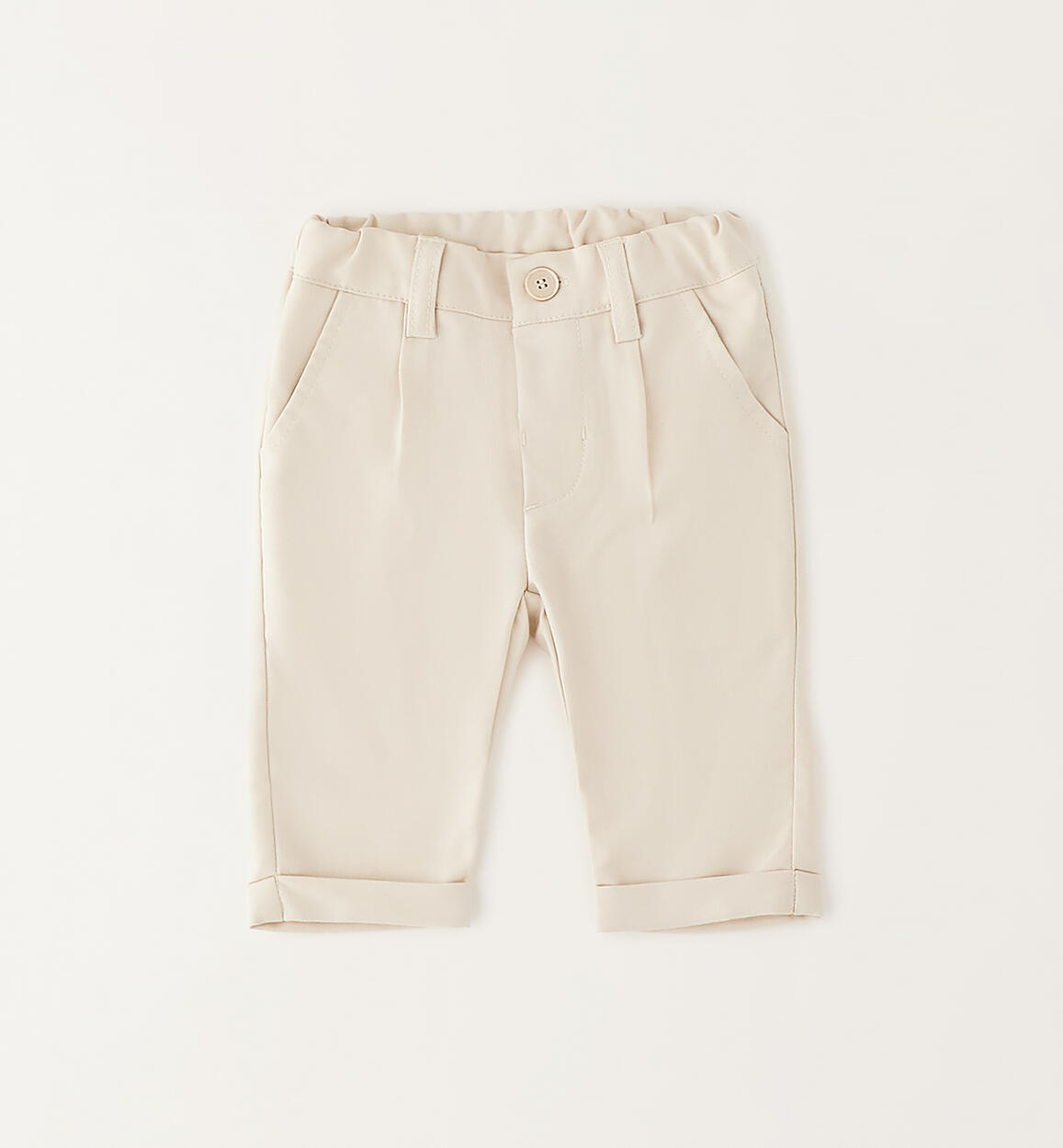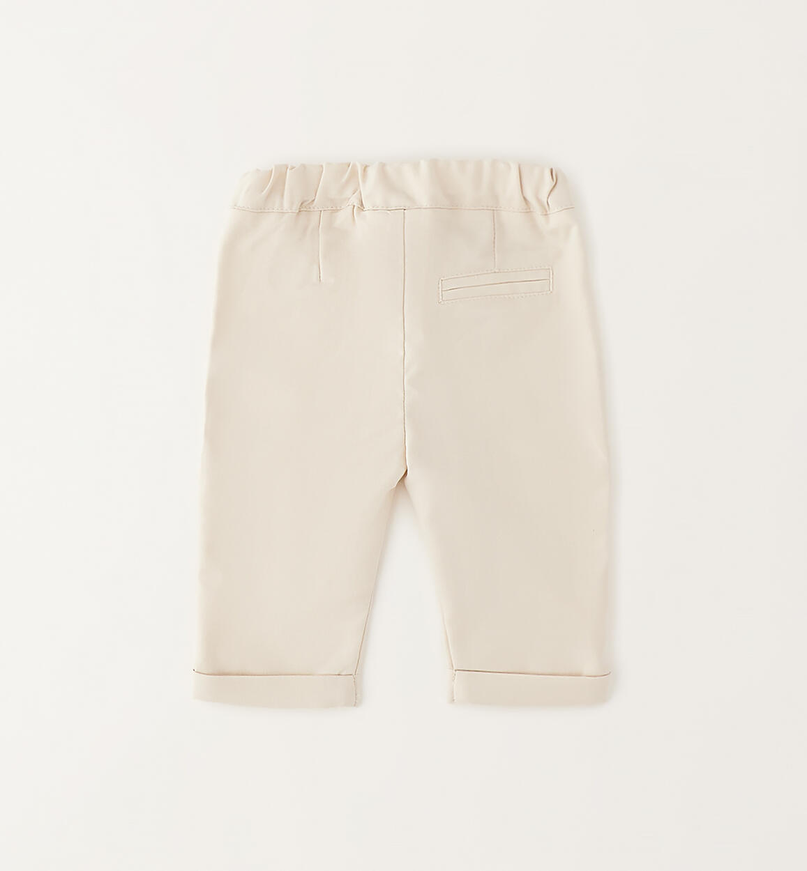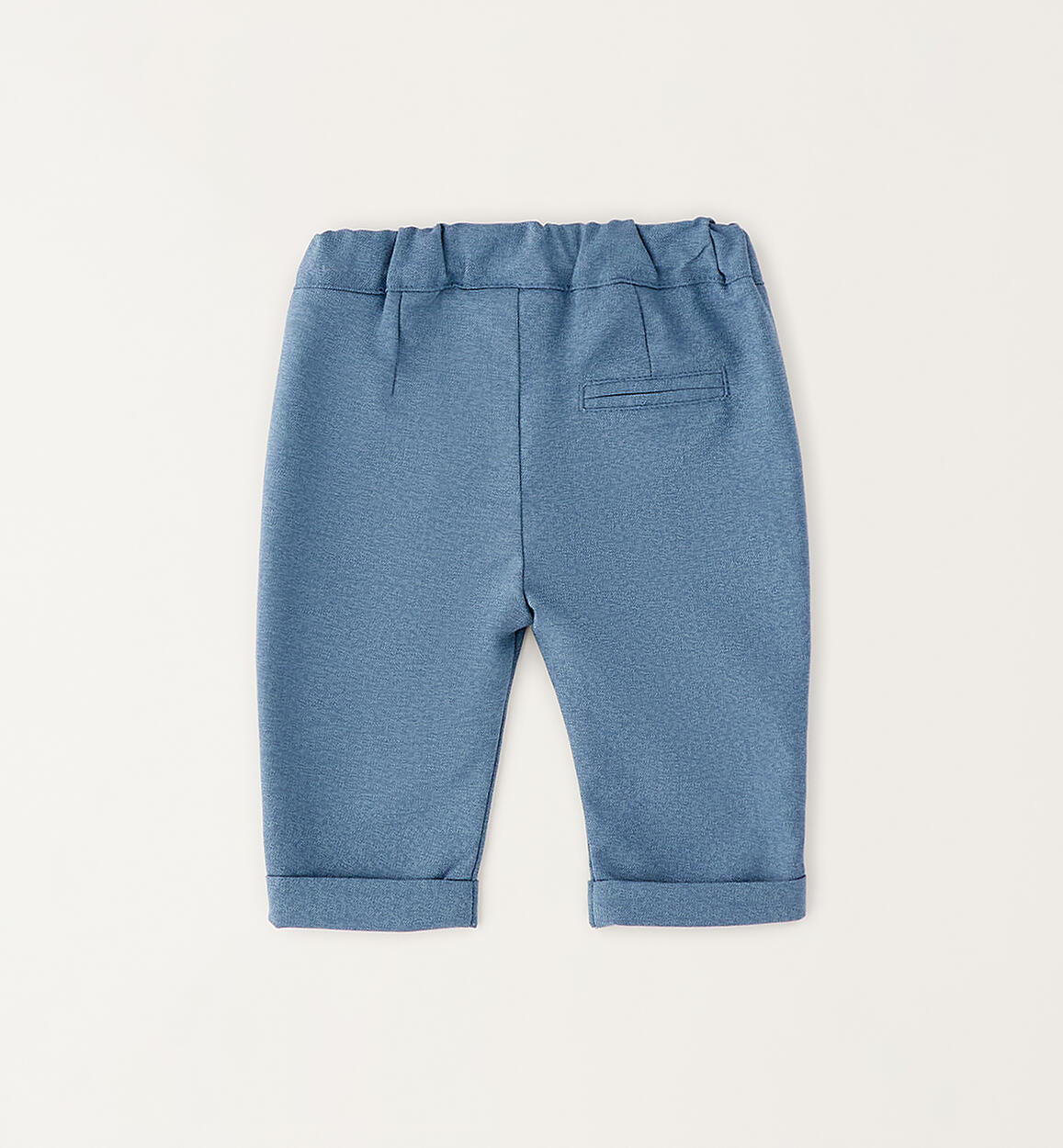 Elegant Minibanda trousers for newborns made of stretch fabric with turn-ups and an adjustable waist with an internal buttonhole. Front pockets and a fake back pocket.Composition