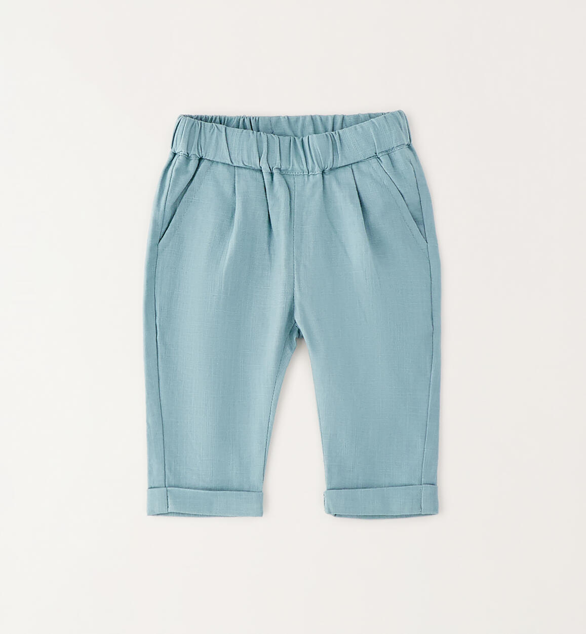 Minibanda long trousers for newborns made of linen and cotton. They feature a turn-up hem and an elastic waistband.Composition