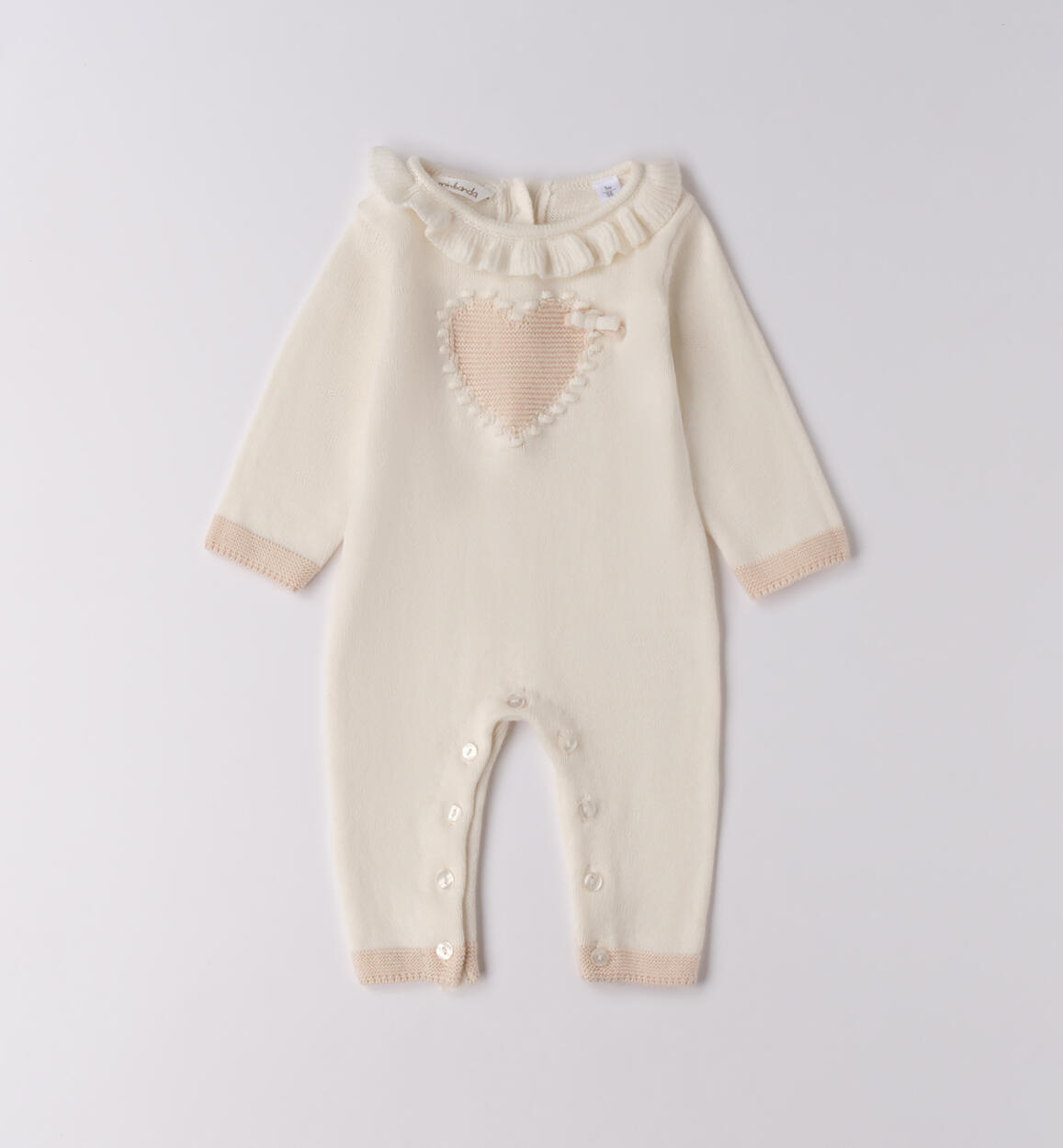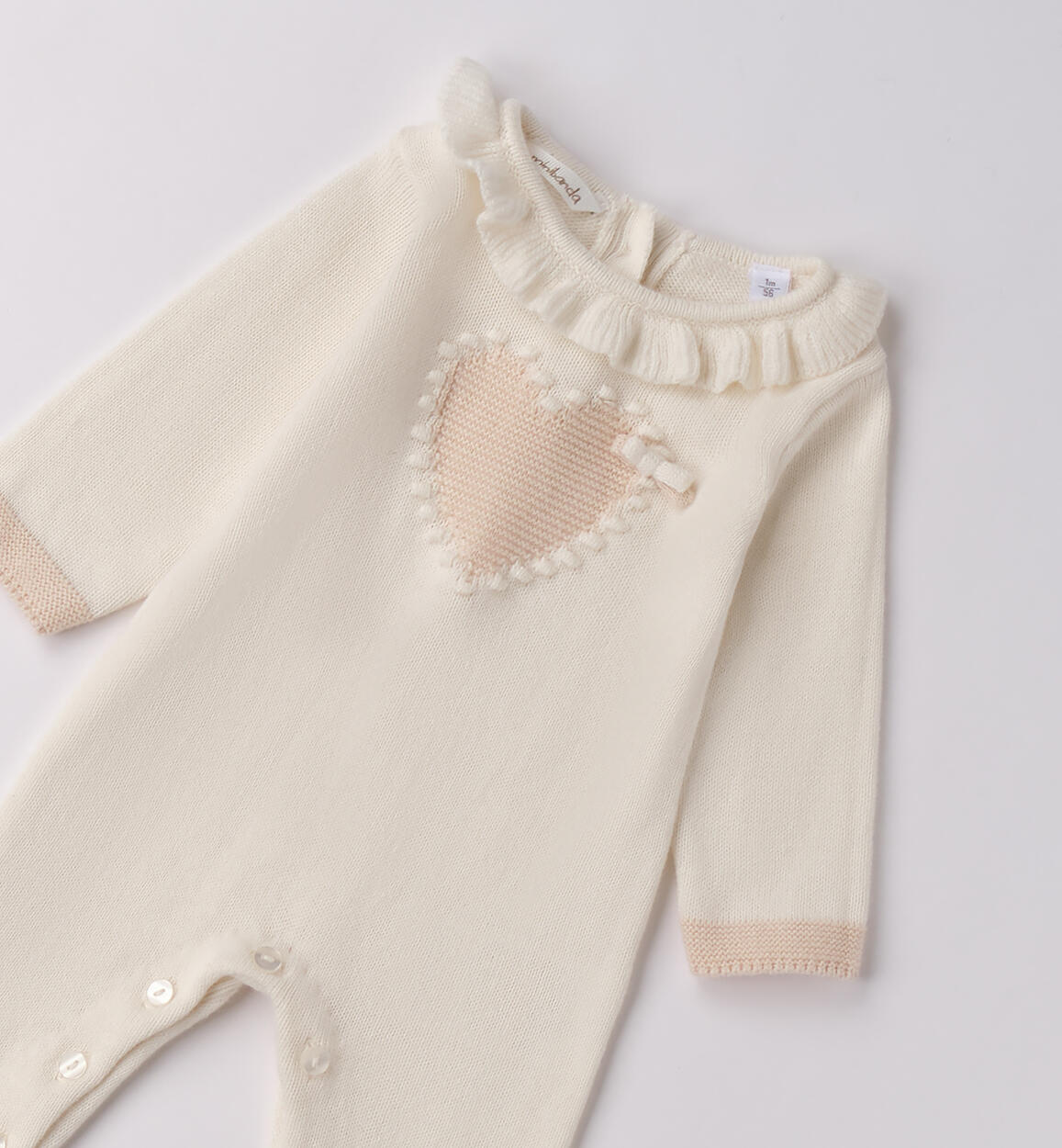 Minibanda Baby Girl Romper (0¿18 months) made of cotton-wool blend tricot with heart intarsia. Features button openings on the back and crotch for easy changing. By choosing our cotton products, you support our investment in the Better Cotton mission. Supplied via a mass balance system and may not contain Better Cotton. Learn more at https://bettercotton.org/massbalance