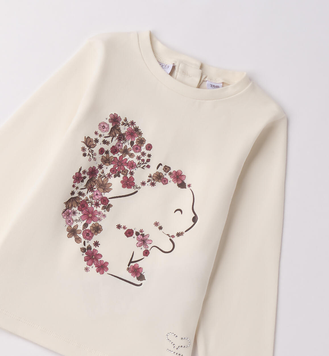 Sarabanda t-shirt for girls aged 9 months to 8 years made of peach-finish stretch cotton jersey. Printed with rhinestones.