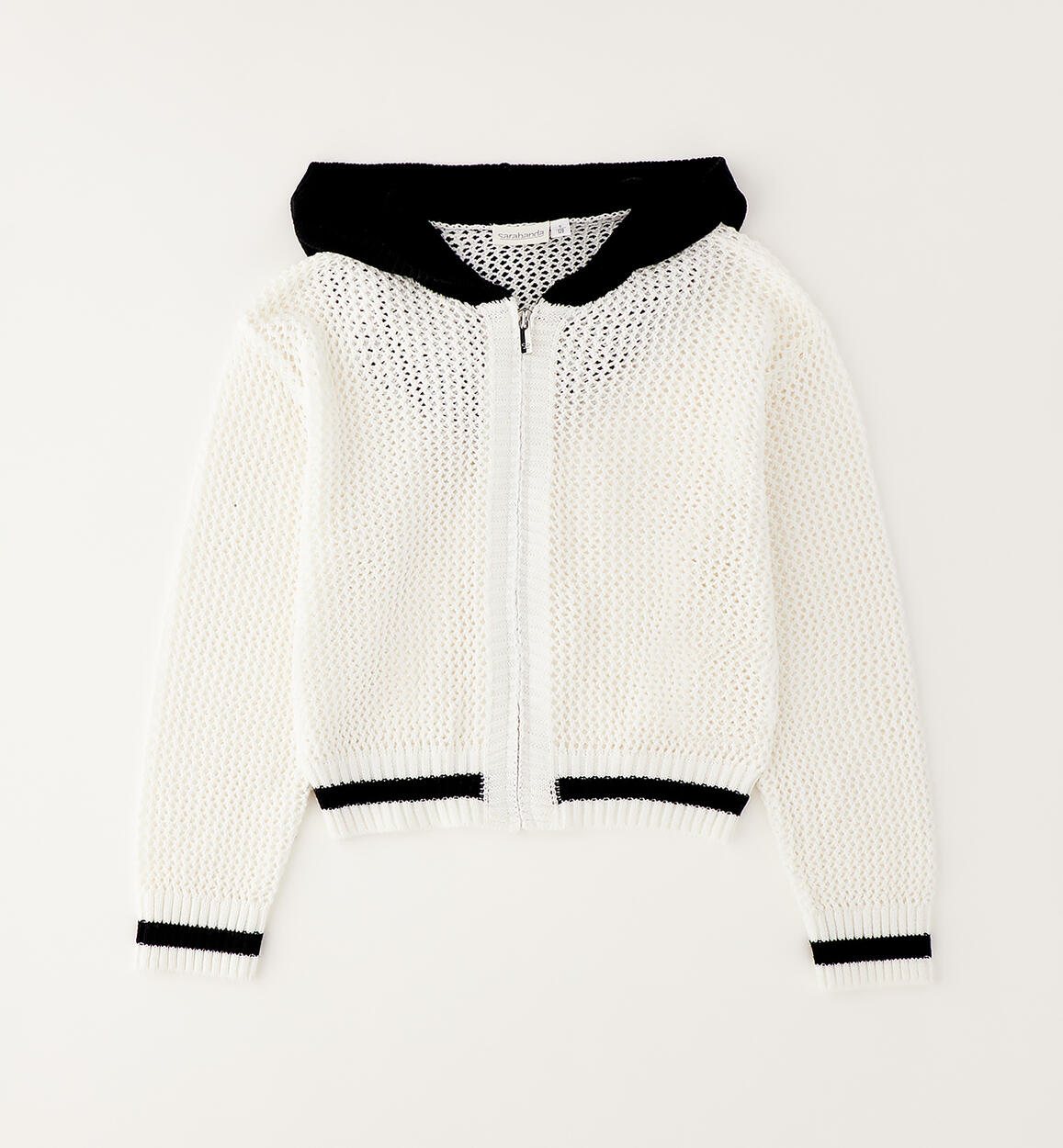 Sarabanda girls' cardigan made of openwork tricot. It features a hood and zip fastening.