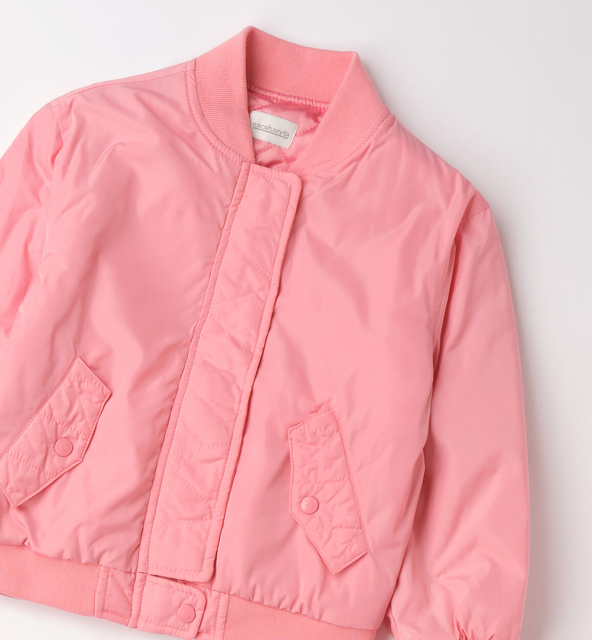 Sarabanda bomber jacket for girls with wadding padding. Cuffs at the bottom and sleeves. Zip and button closure. The product does not contain animal-derived materials. Animal free is a trademark of LAV www.animalfree.info