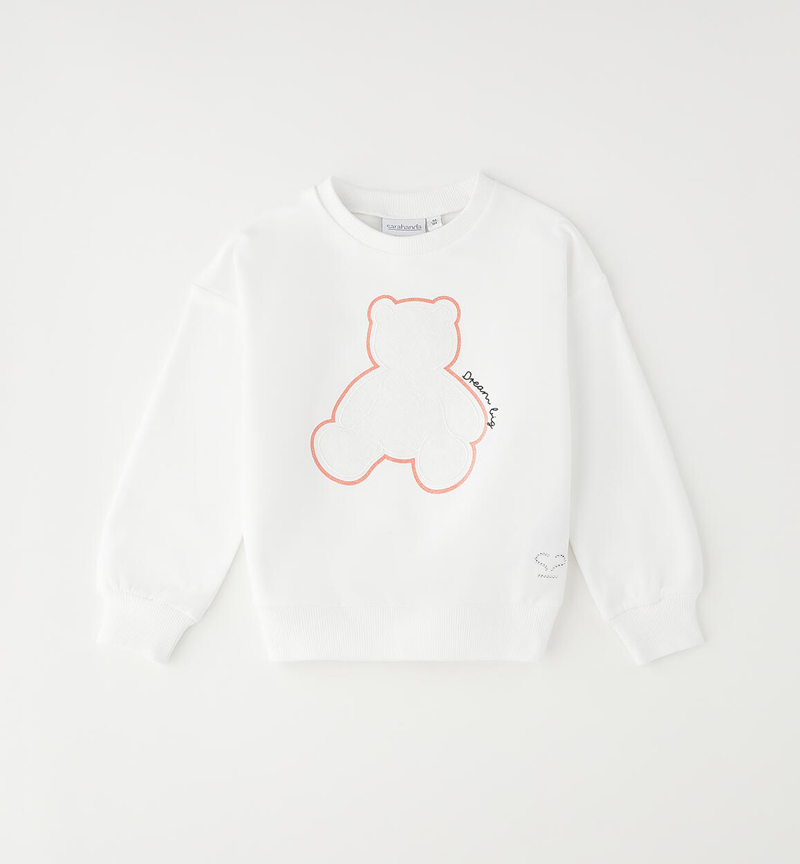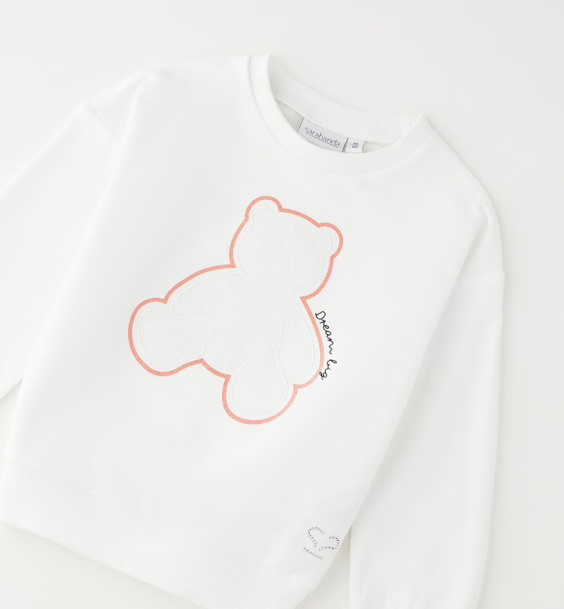 Sarabanda girls' crewneck sweatshirt made of stretch cotton French terry. Glitter details with lace appliqué.