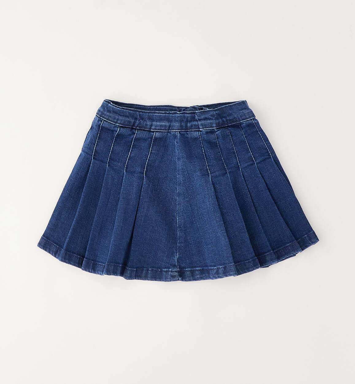 Sarabanda girls' stretch cotton denim skirt. Side zip and button opening. Pleated design, mini length. Adjustable waist with internal elastic loop.