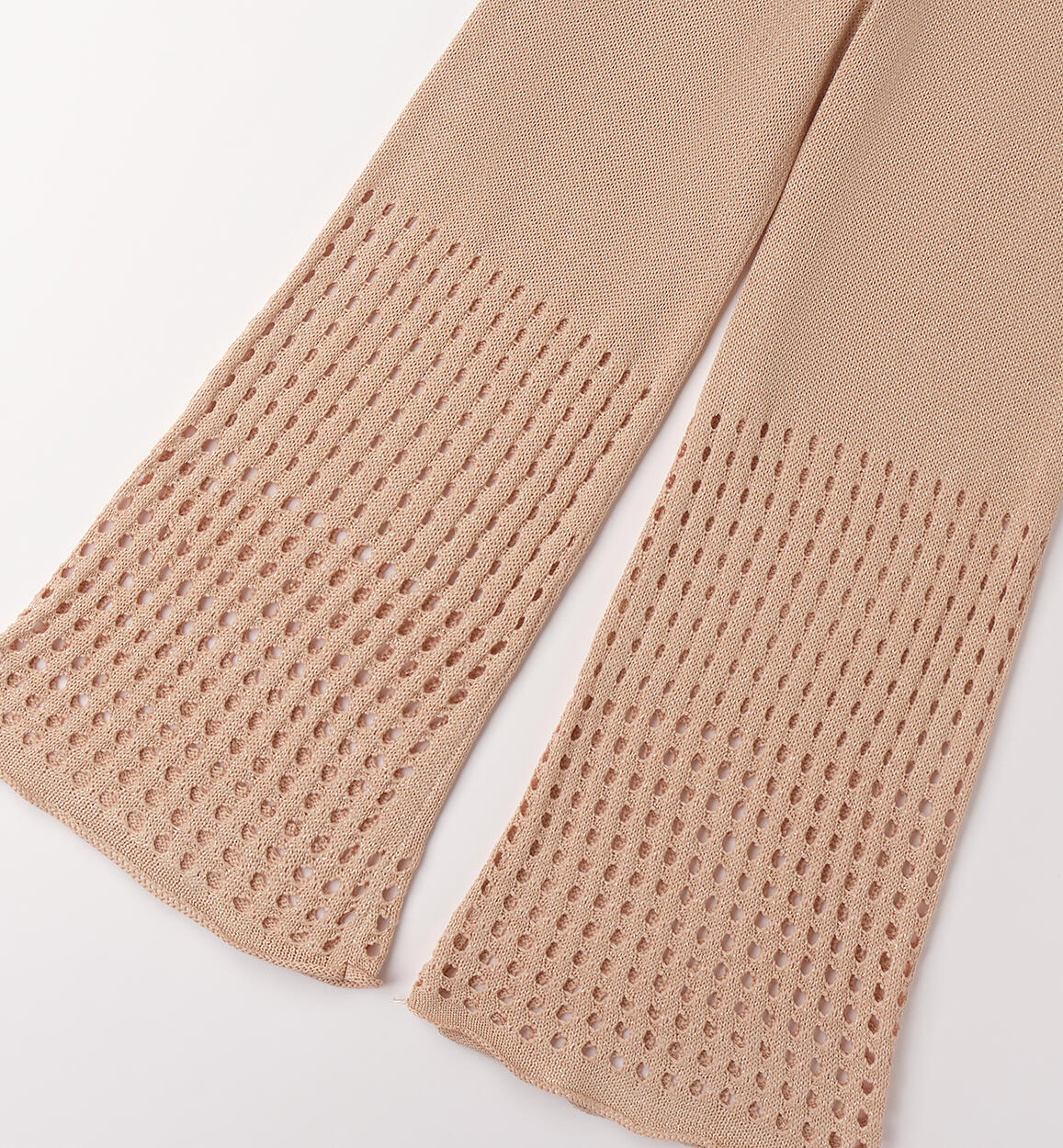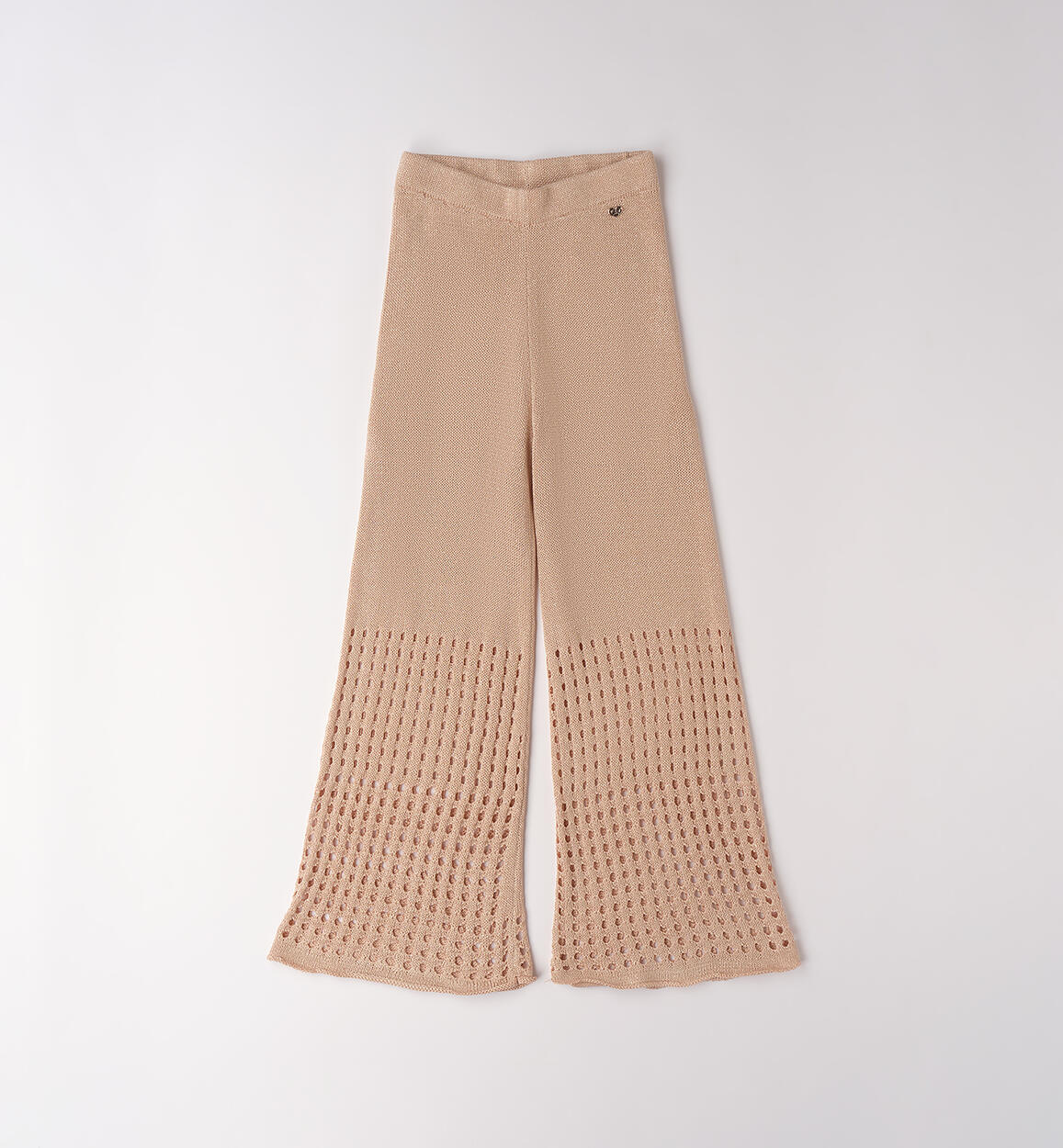 Sarabanda girls' long lurex tricot trousers with openwork detailing at the bottom. Elastic waist.Composition