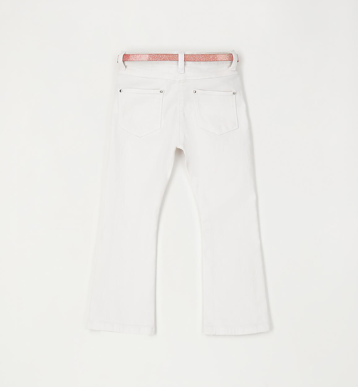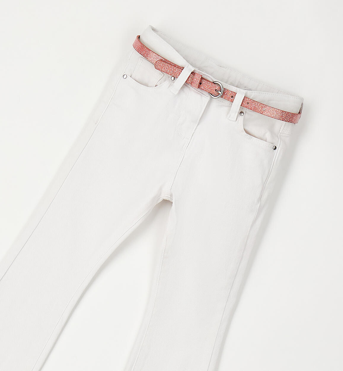 Sarabanda girls' long trousers made of stretch cotton twill. Zip and button closure. Adjustable waist with internal elastic loop. Matching glitter belt.Composition