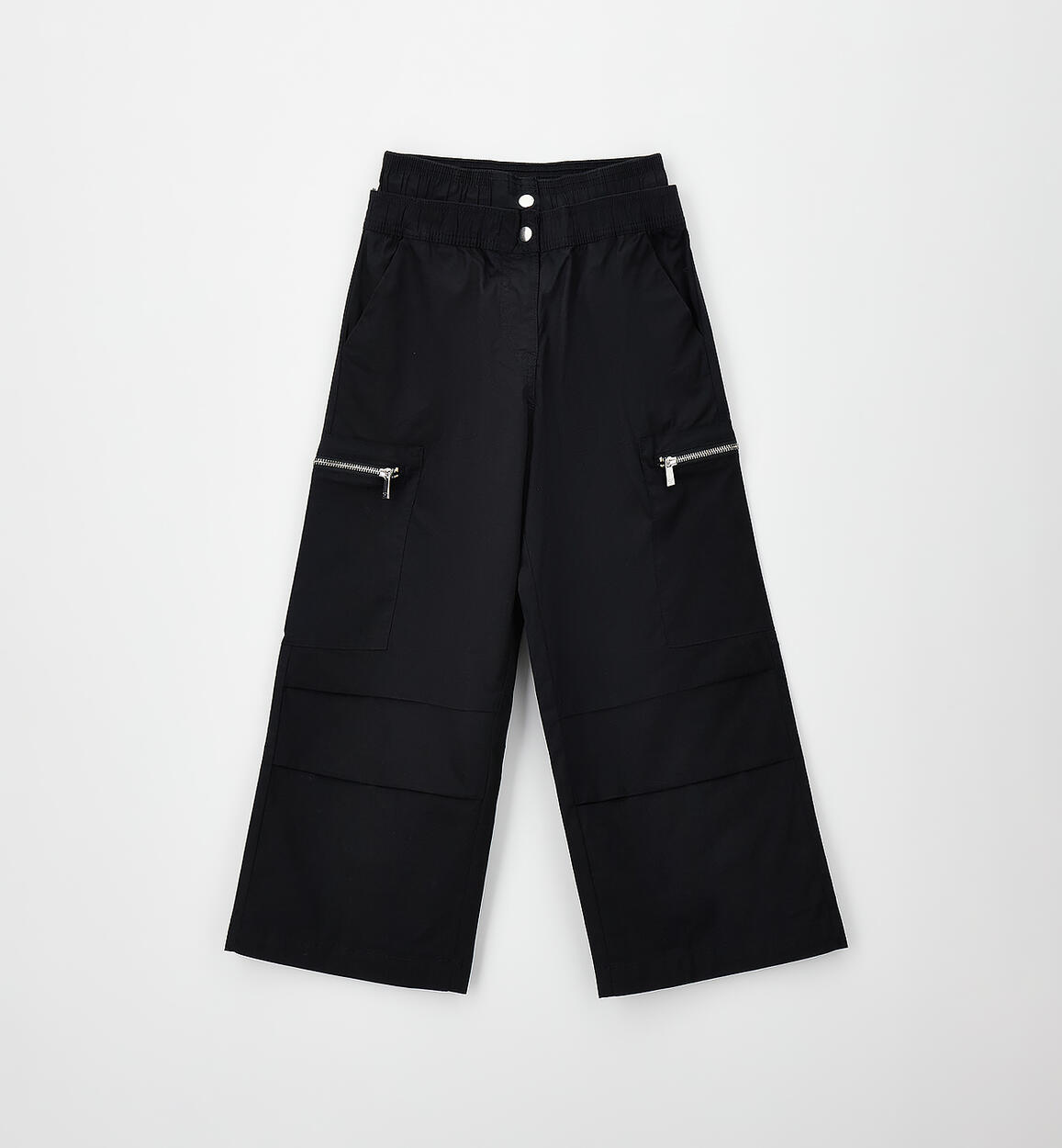 Sarabanda girls' long trousers made of stretch cotton parachute fabric. Side zip pockets. Double elastic waistband and zip and button fastening.