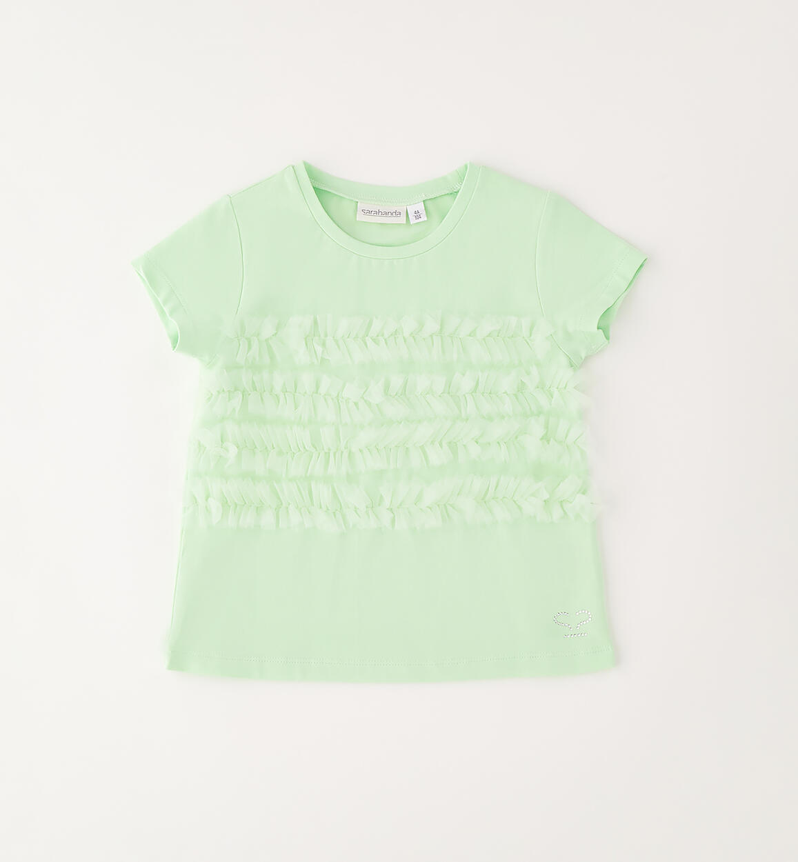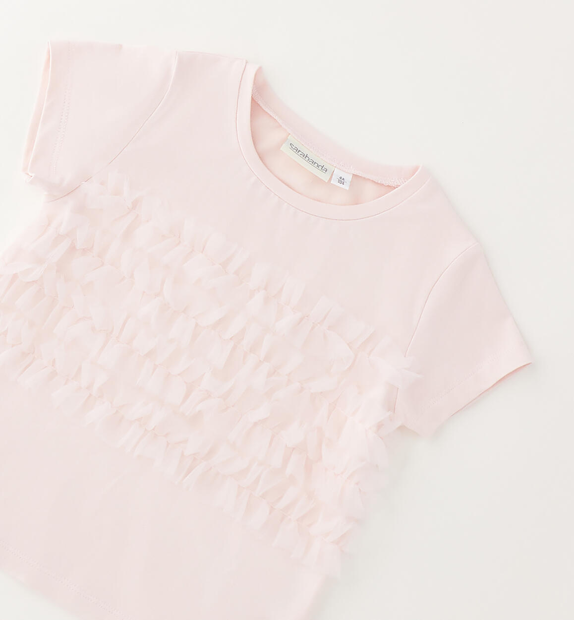 Sarabanda girls' T-shirt made of stretch cotton jersey with a tulle insert. This style is part of the Sarabanda Premium collection.Composition