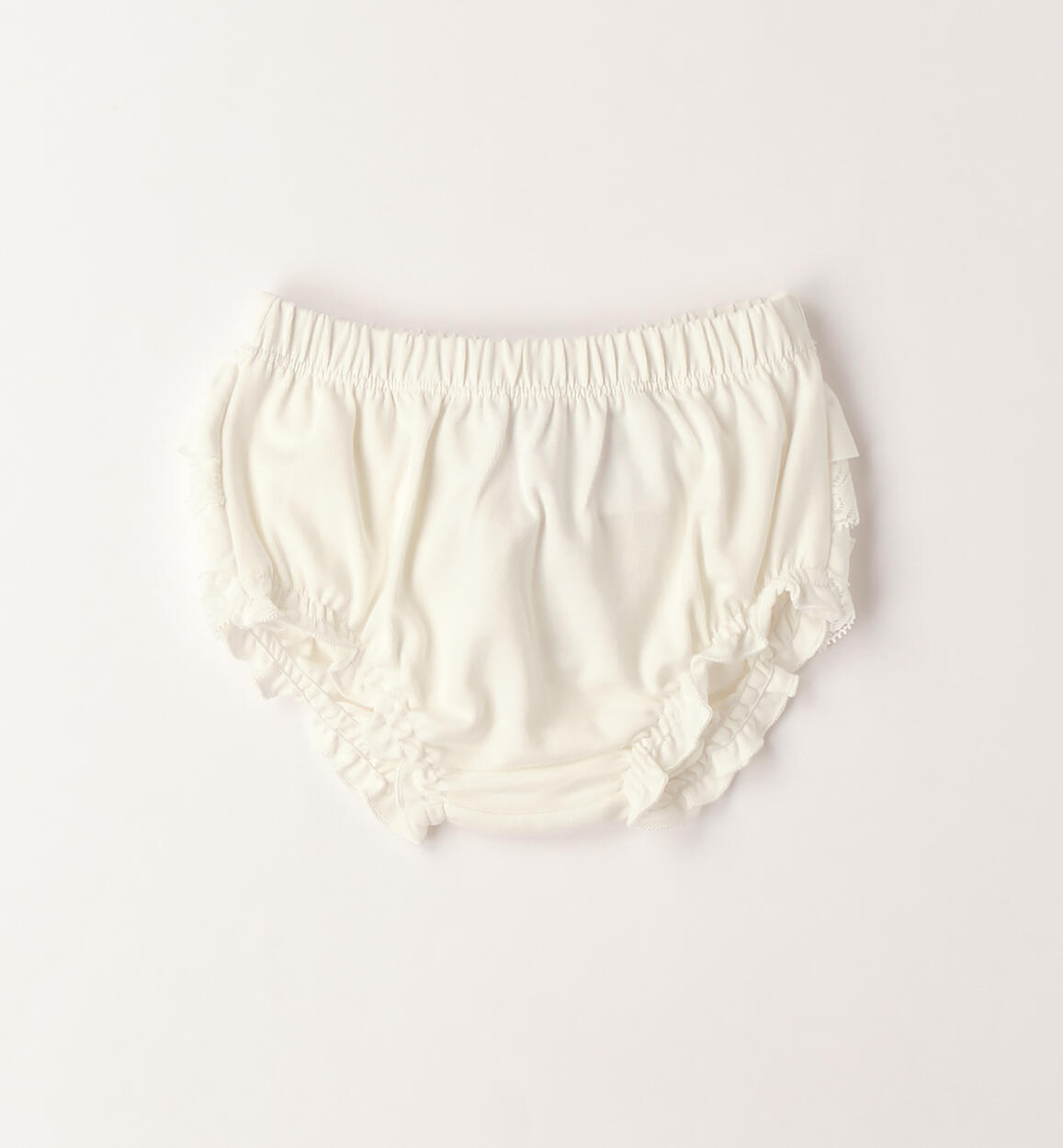 Minibanda baby girl's panties made of stretch cotton jersey with lace ruffles. By choosing our cotton products, you support Minibanda's commitment to the Better Cotton mission. This product is supplied through a mass balance system and may not contain Better Cotton. Learn more at bettercotton.org/massbalance