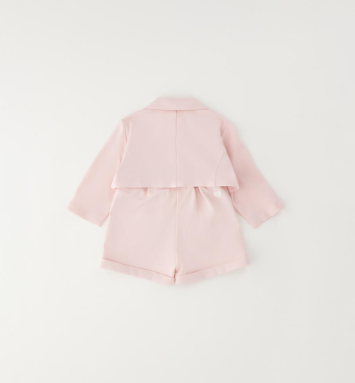 Elegant outfit for baby girls in Minibanda Milanese stitch, consisting of a jacket and shorts. The trousers have an adjustable waist with an internal buttonhole and a turn-up at the bottom.Composition