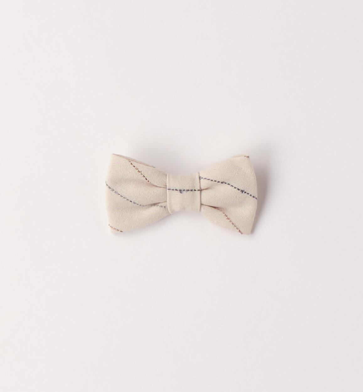 Minibanda baby bow tie in striped embroidered fabric. Eyelet on the back for attaching directly to the shirt button.