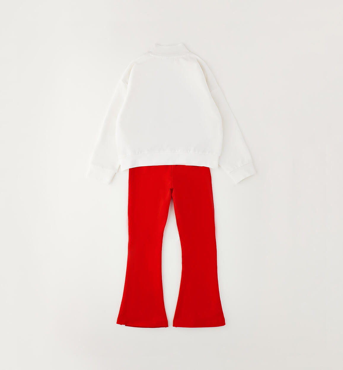 Sarabanda two-piece tracksuit for girls made of stretch cotton fleece. Zip-up jacket with print and applique. Flared leggings with side stripes, print and terrycloth applique.