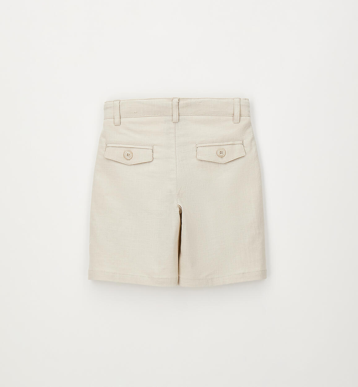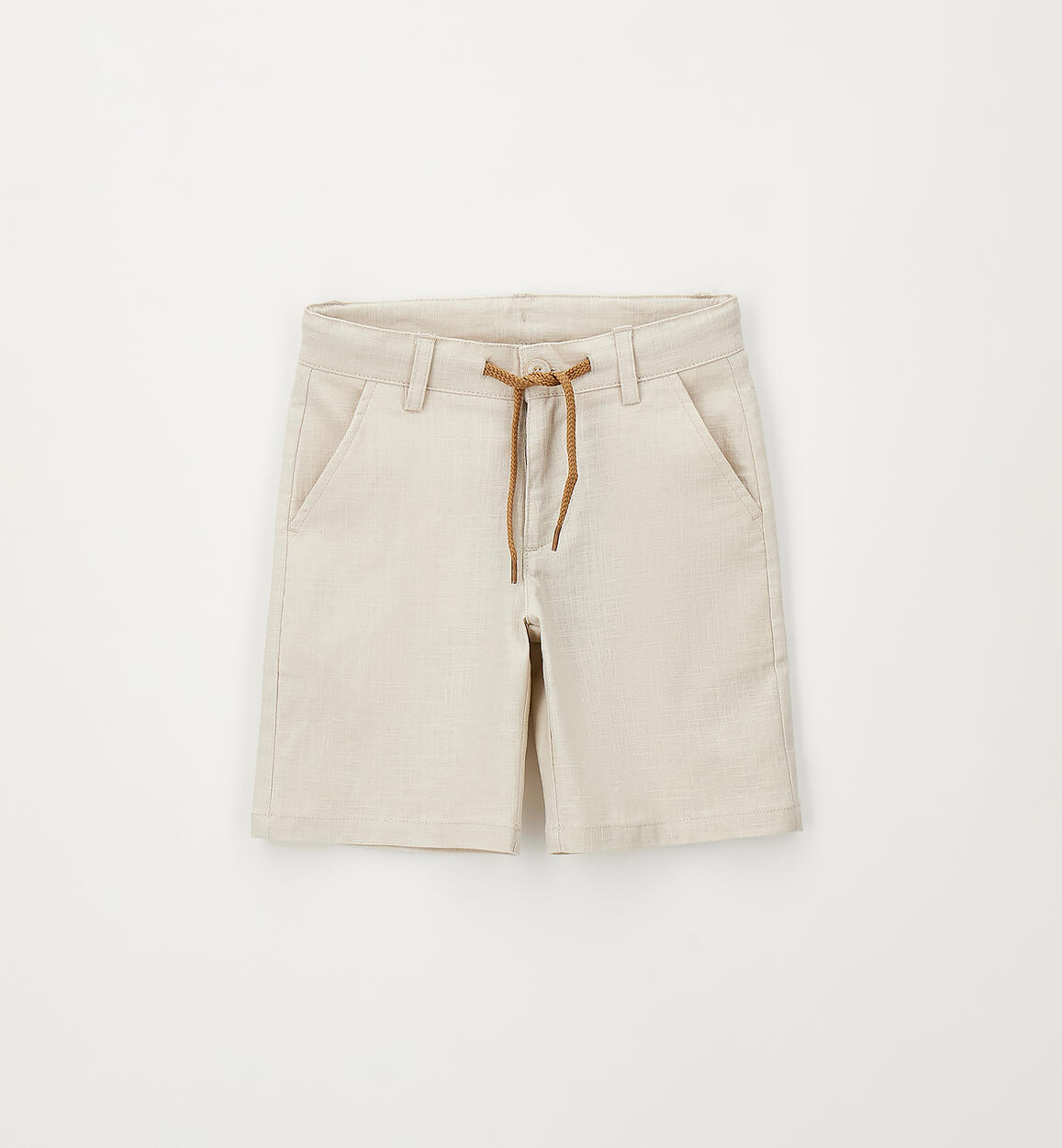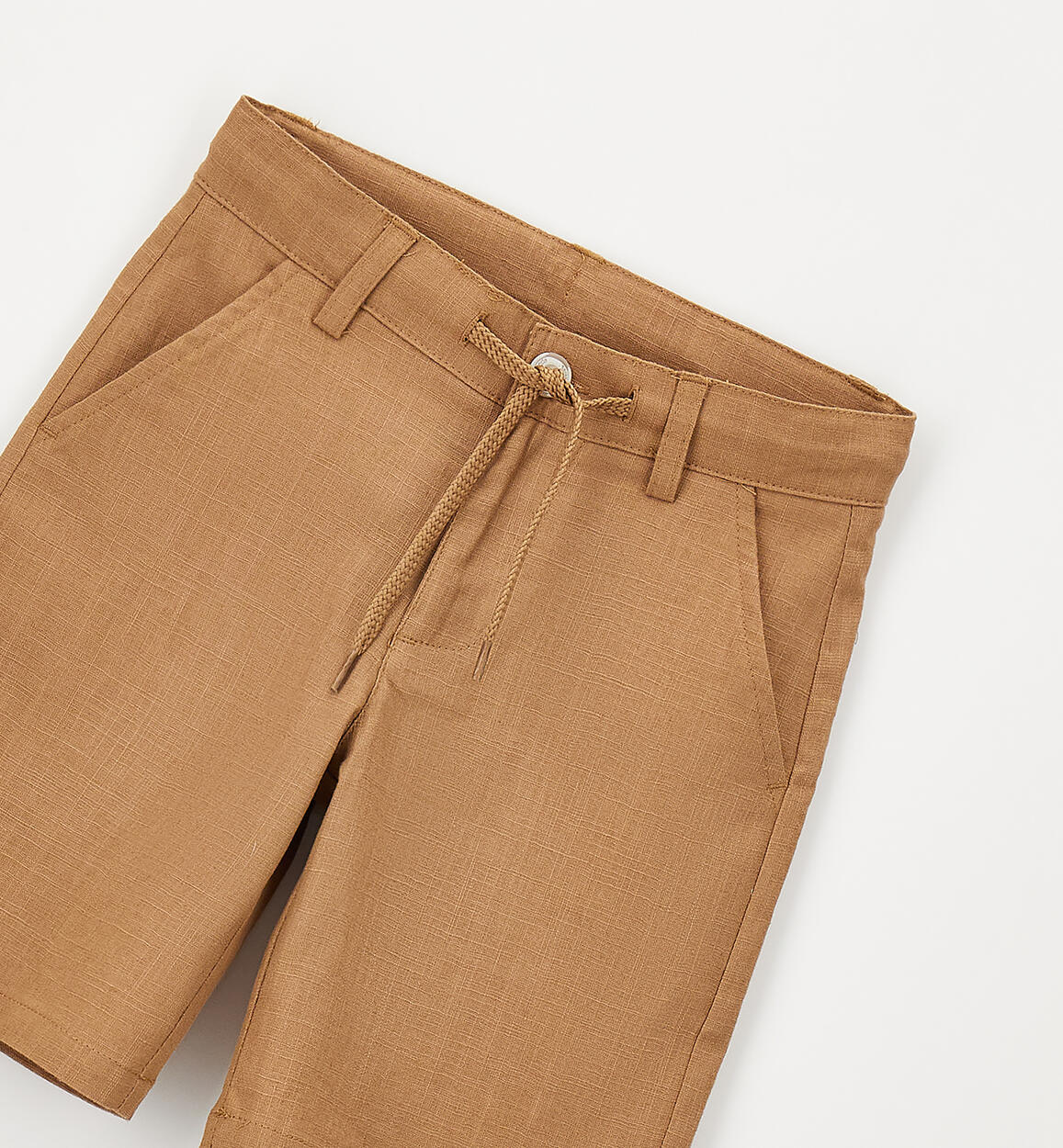 Sarabanda boys' shorts made of linen and cotton. Elastic waistband and drawstring. Adjustable waistband with internal buttonhole. Knee-length. Regular fit.Composition