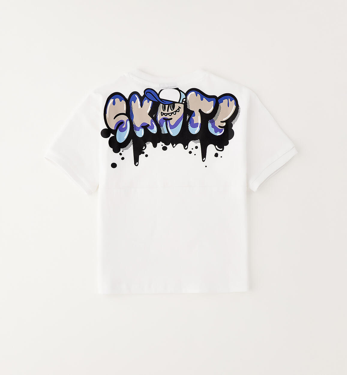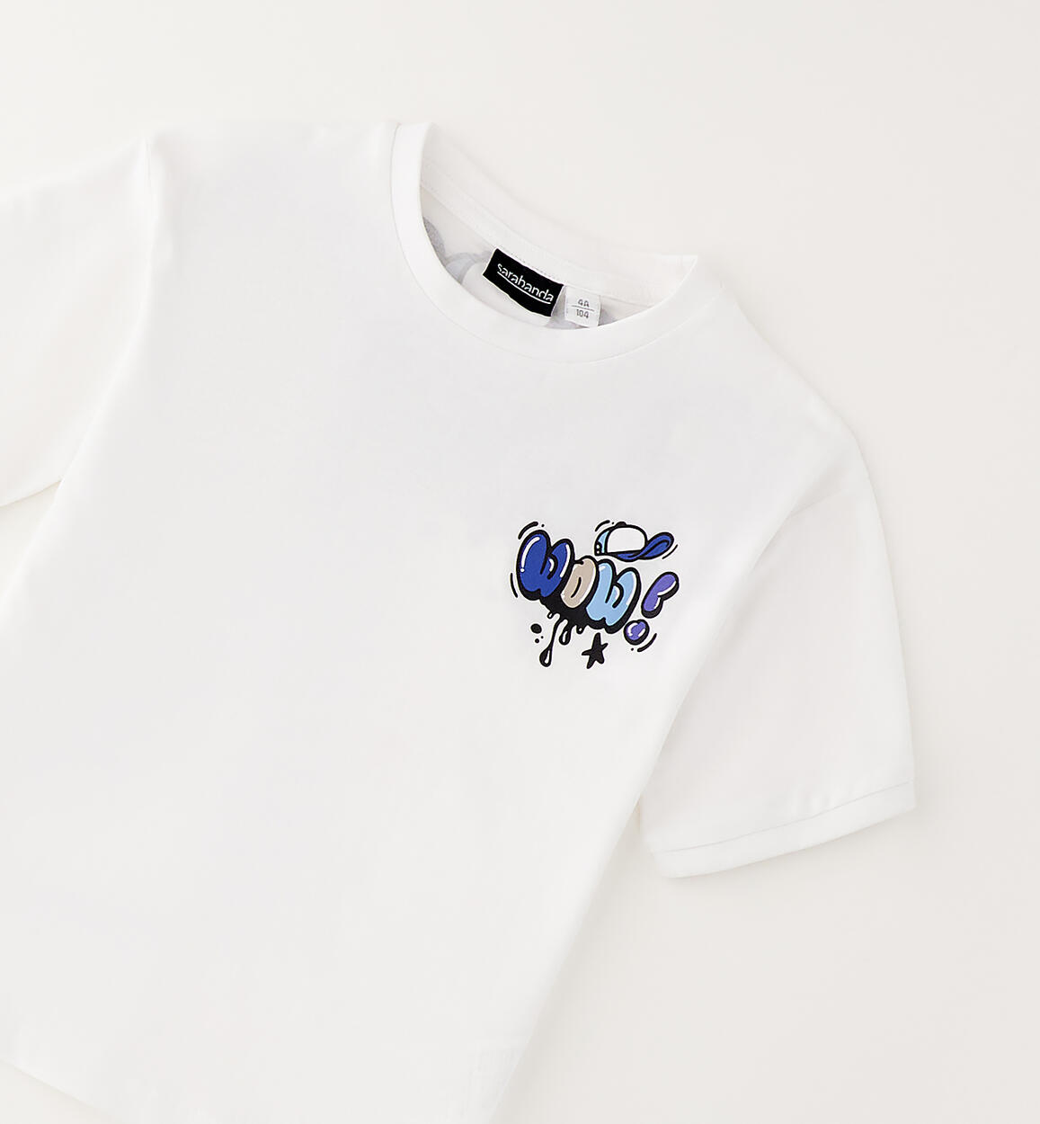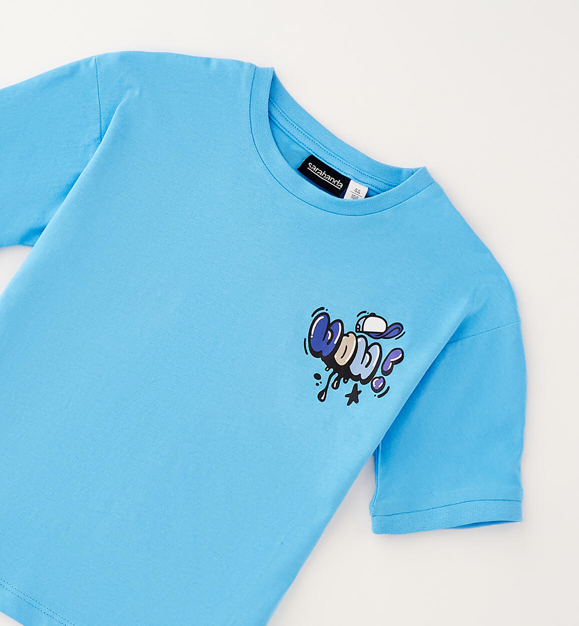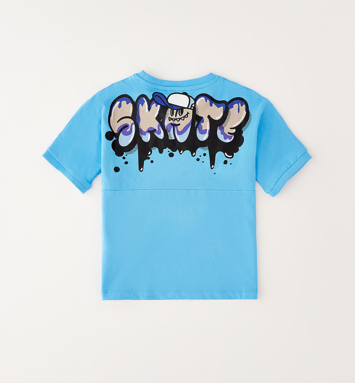Sarabanda boys' T-shirt made of 100% cotton jersey with a skate-themed print. Large print on the back. Dropped shoulders, oversized fit.