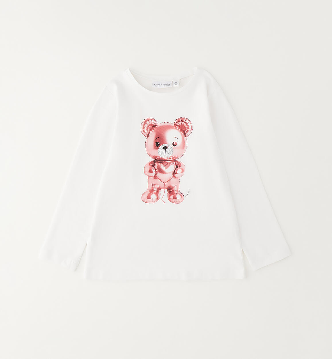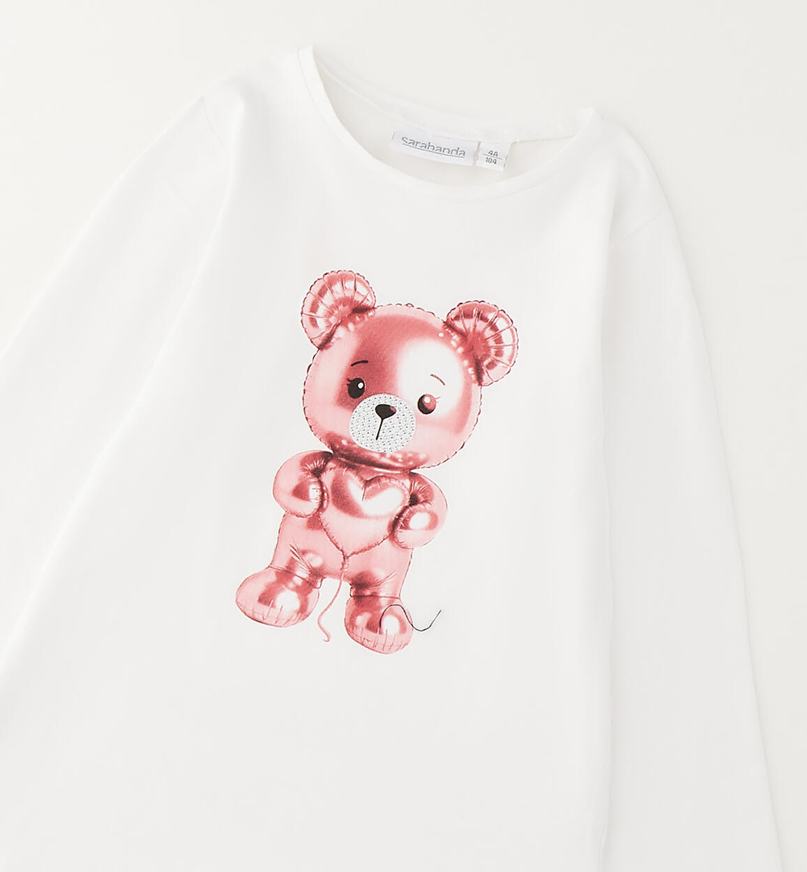 Sarabanda long-sleeved crewneck T-shirt for girls made of stretch cotton jersey. Featuring a rhinestone bear print.