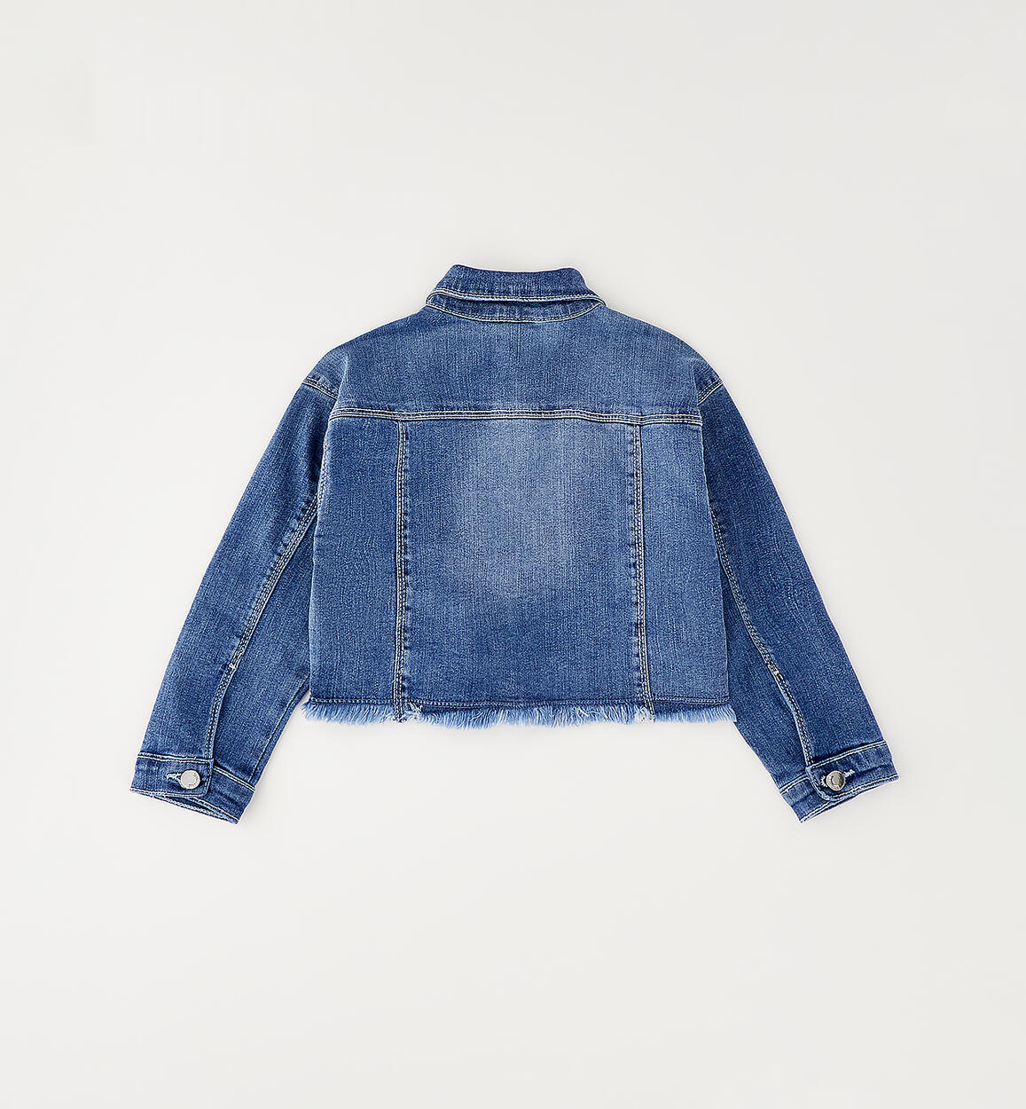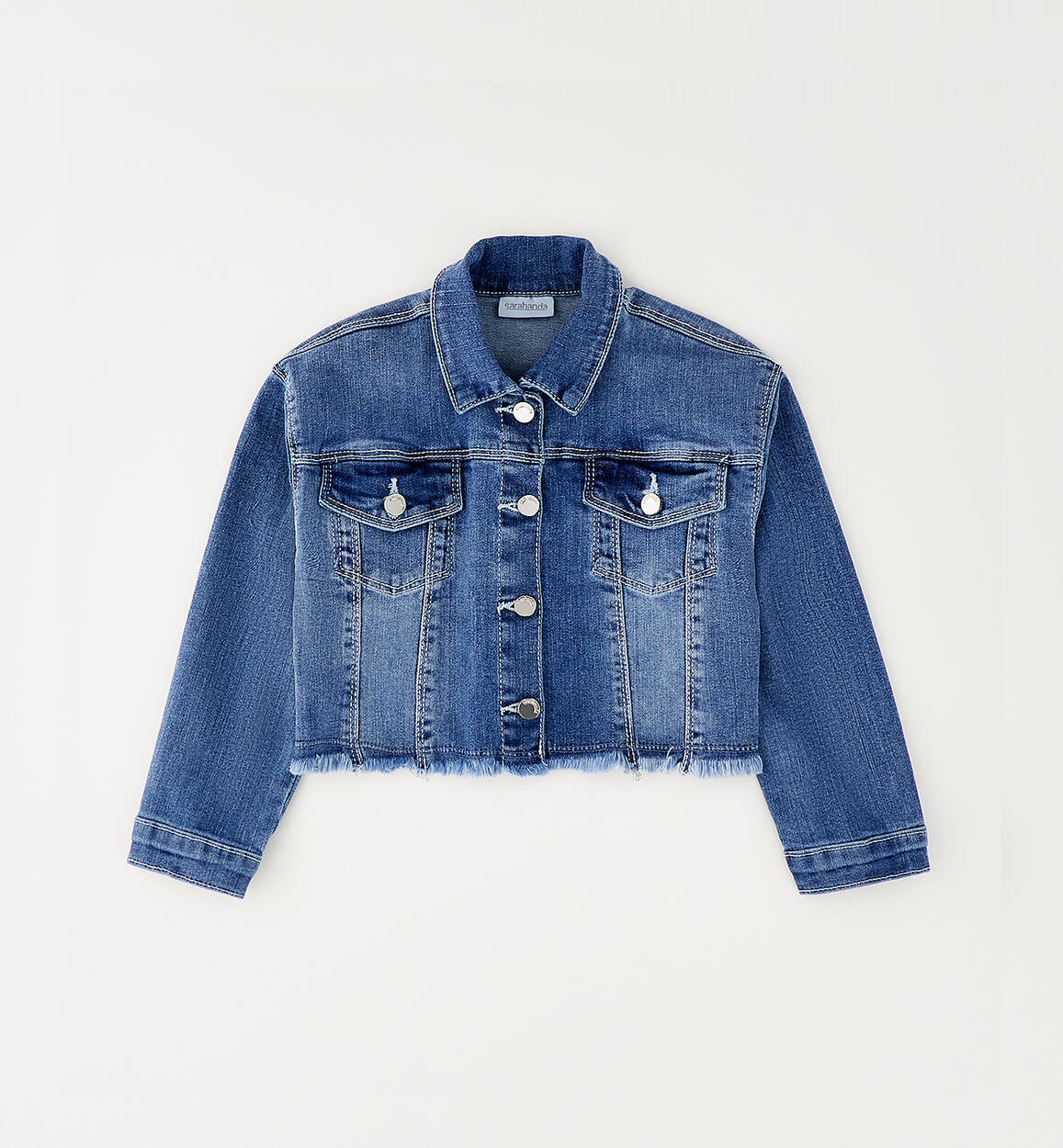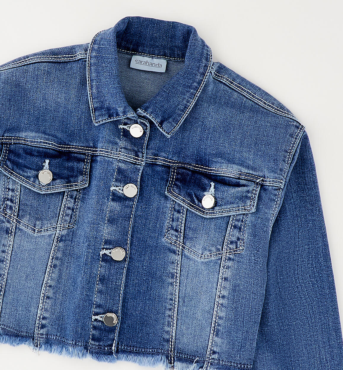 Sarabanda girls' jacket made of stretch cotton denim with frayed hem. Button closure.