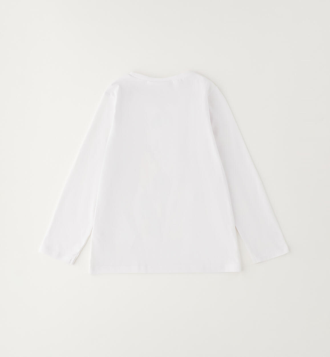 Sarabanda long-sleeved crewneck sweater for girls made of stretch cotton jersey. It features a rhinestone print on the front. It opens with buttons at the back for sizes up to 3 years.