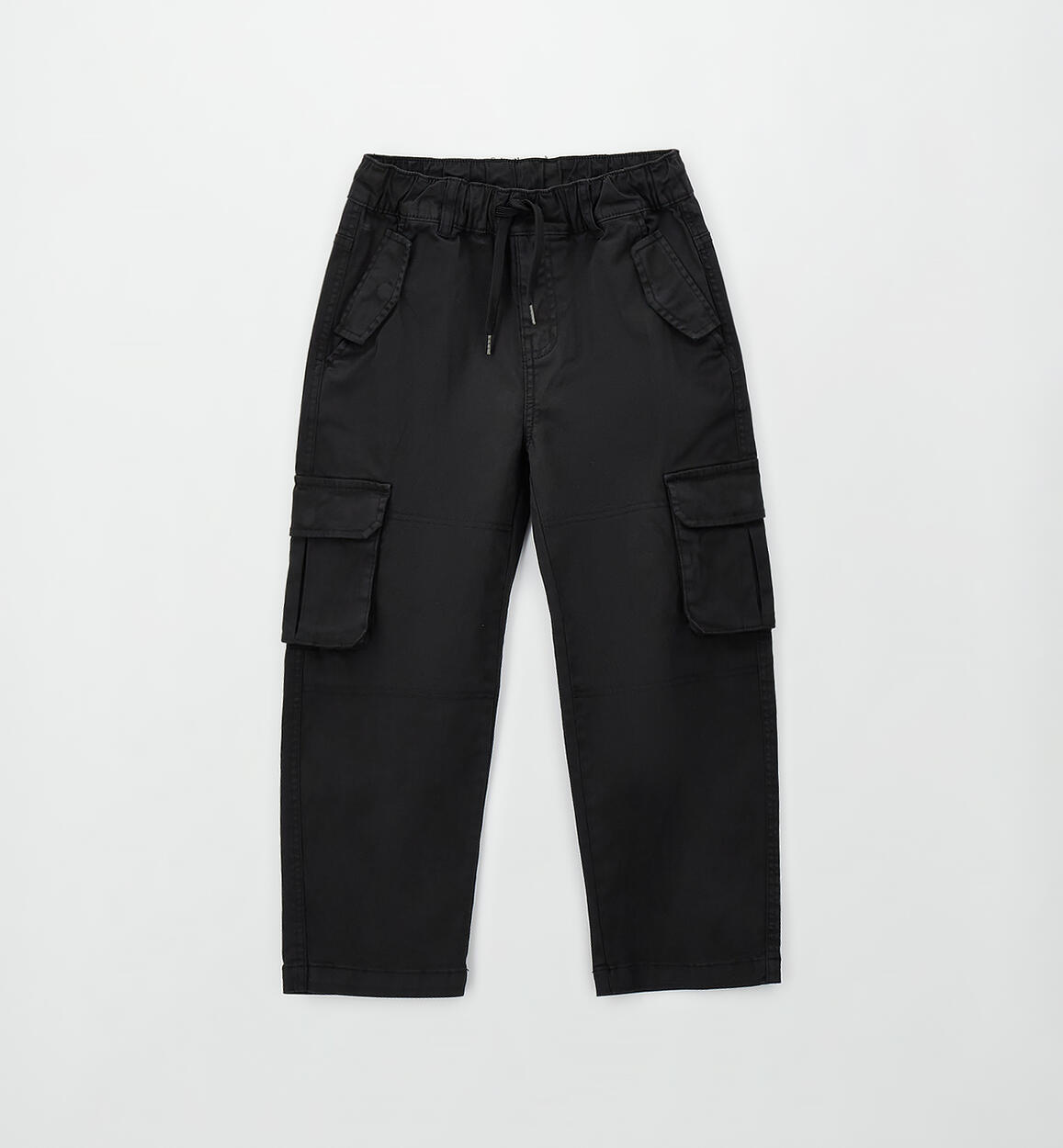 Sarabanda boys' long trousers with an elastic waist and drawstring. Made of stretch cotton twill. Wide fit. Side pockets.