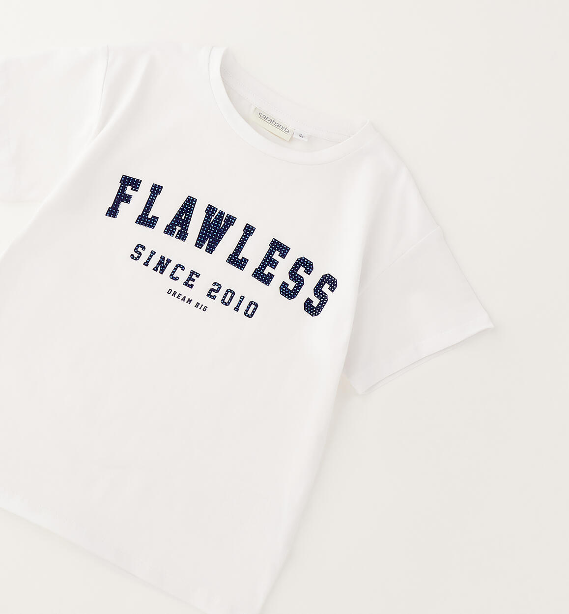 Sarabanda long-sleeved crew neck for girls made of stretch cotton jersey with a print enriched with rhinestones