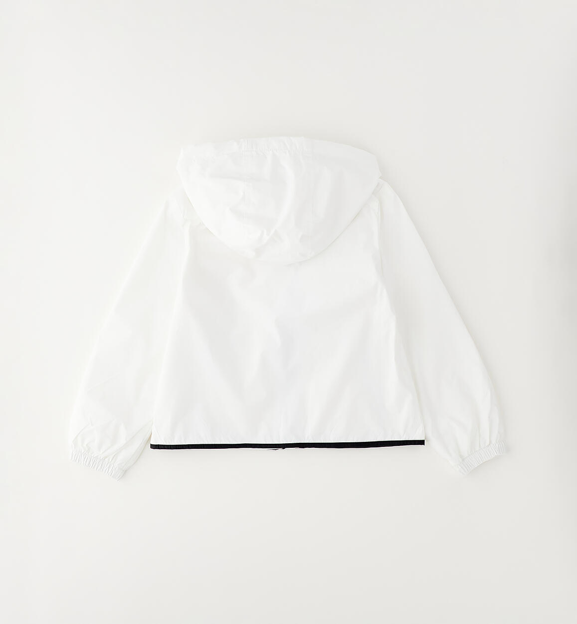 Sarabanda girls' nylon jacket. Windproof, with a hood and zip opening. The jacket is lined with cotton jersey.