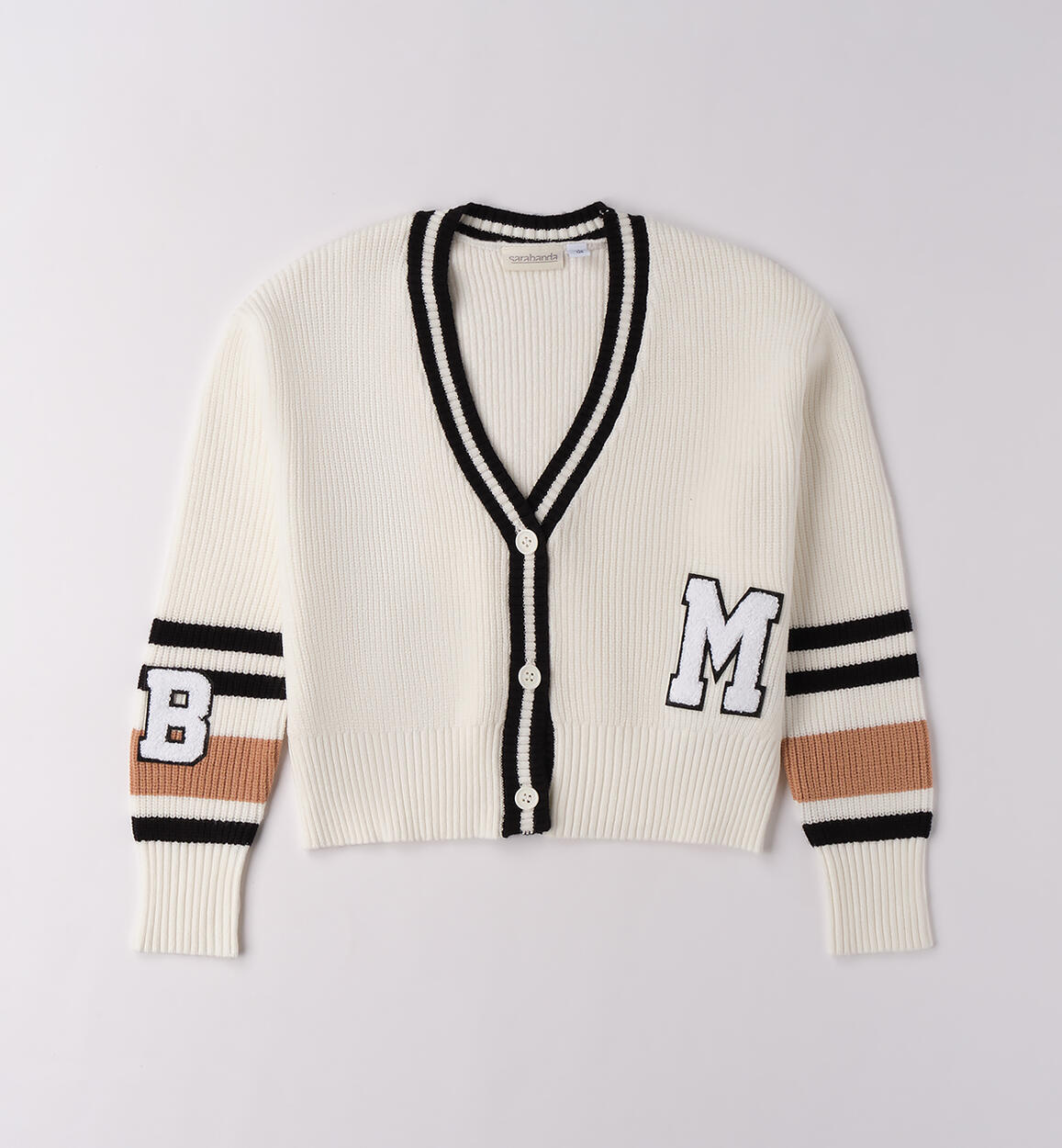 Sarabanda cardigan for girls aged 8 to 16 years made of tricot with button front closure. Contrasting color details and terry embroidery appliqués.Composition