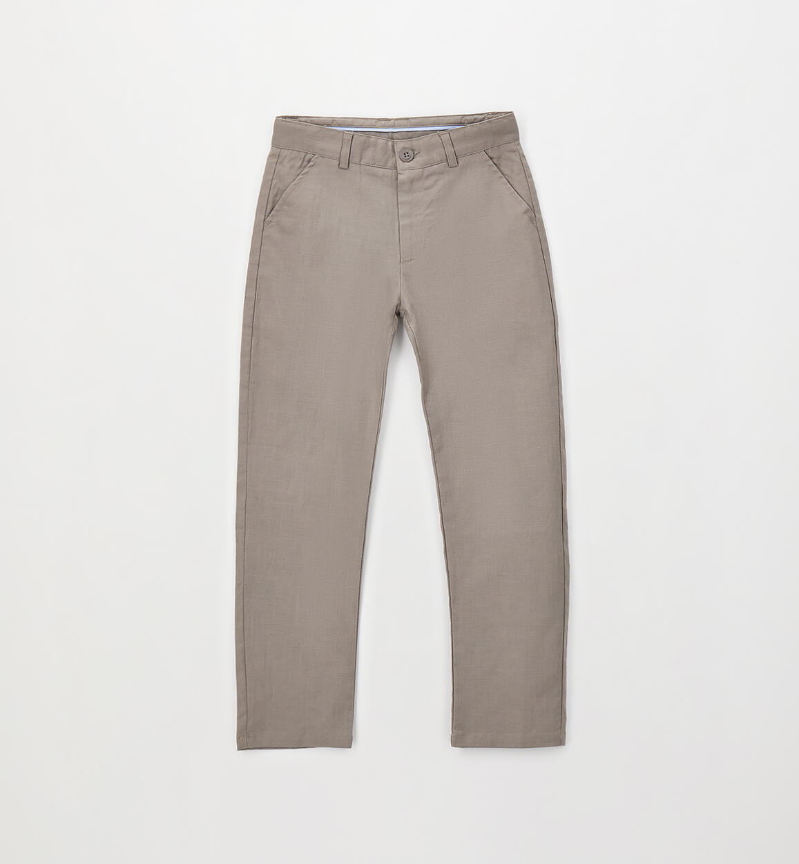 Sarabanda boys' long trousers made of linen and cotton. Zip and button closure. Regular fit. Adjustable waist with internal elastic buttonhole. This style is part of the Sarabanda Premium collection, designed for more formal occasions.Composition