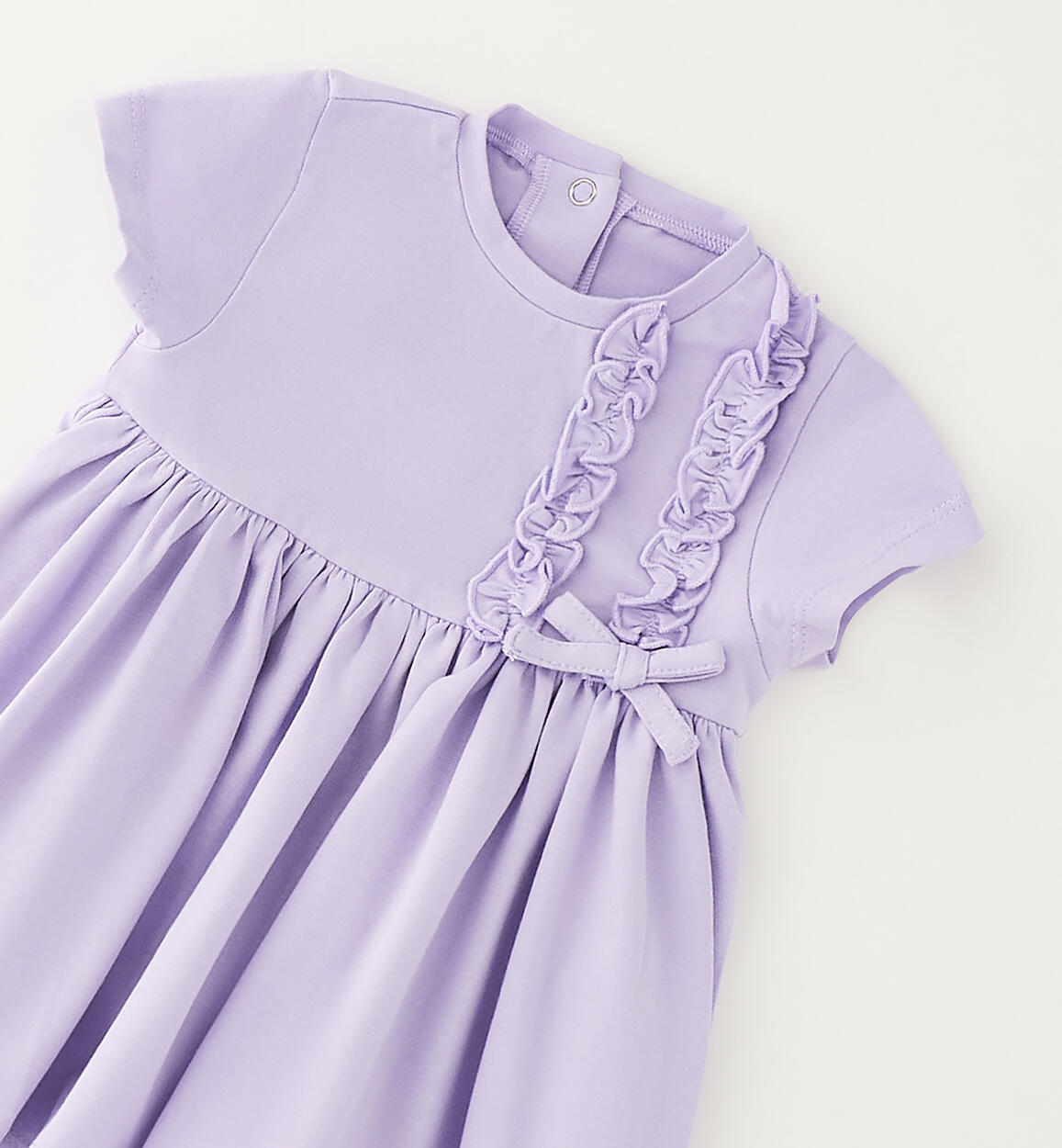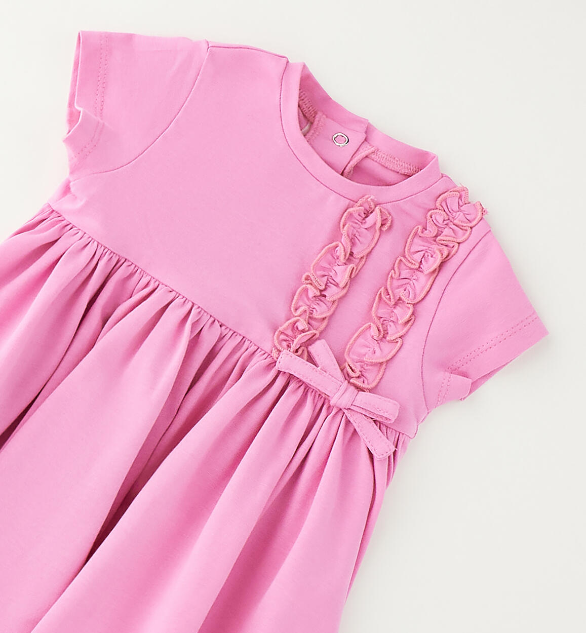 Abito in jersey stretch di cotone Minibanda per neonata con ruches davanti. Lunghezza sopra al ginocchio. Apertura dietro con bottoni a pressione. Scegliendo i nostri prodotti in cotone, sostieni l'impegno di Minibanda nella missione Better Cotton. La fornitura di questo prodotto avviene tramite un sistema di bilancio di massa e potrebbe non contenere Better Cotton. Leggi di più su bettercotton.org/massbalanceComposizione
