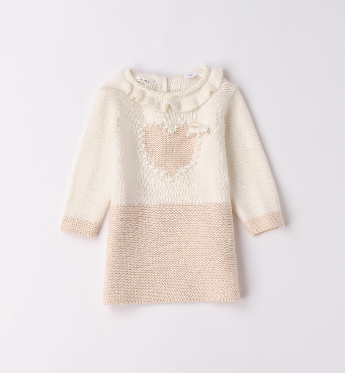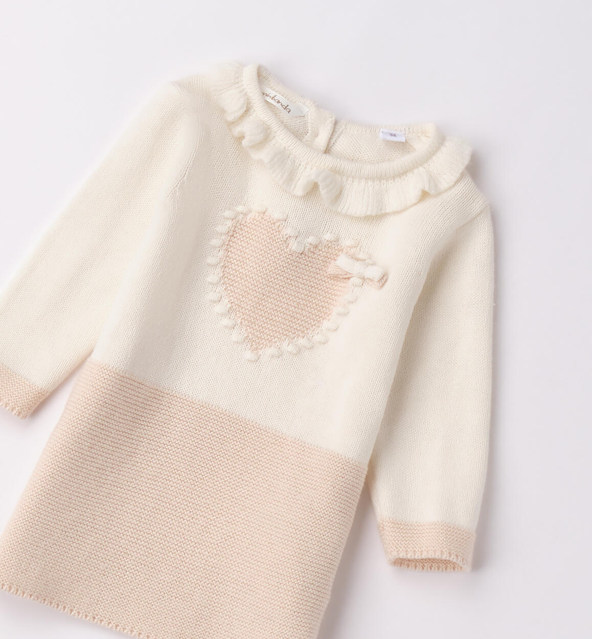 Abito tricot per bimba Minibanda da 1 a 24 mesi. L'abito è realizzato in cotone misto lana e presenta apertura sul retro con bottoni. Modello bicolor con cuore a intarsio e applicazione fiocco. Lunghezza sopra al ginocchio. Scegliendo i nostri prodotti in cotone, sostieni il nostro investimento nella missione Better Cotton. La fornitura di questo prodotto avviene tramite un sistema di bilancio di massa e potrebbe non contenere Better Cotton. Leggi di più su bettercotton.org/massbalance