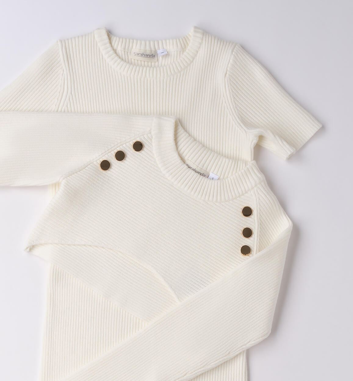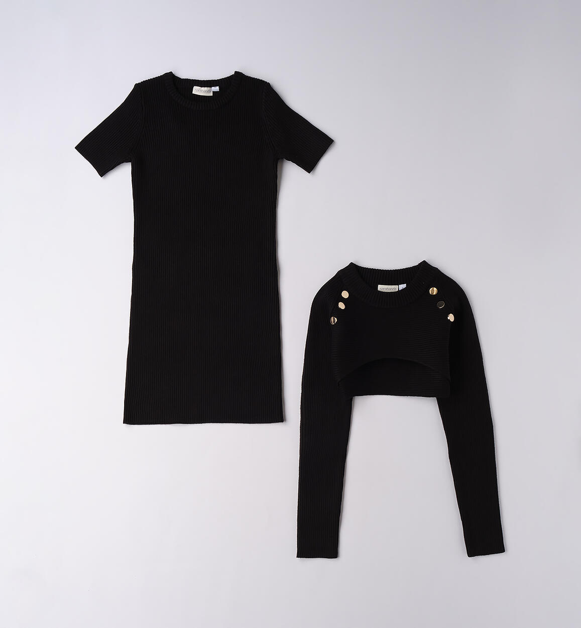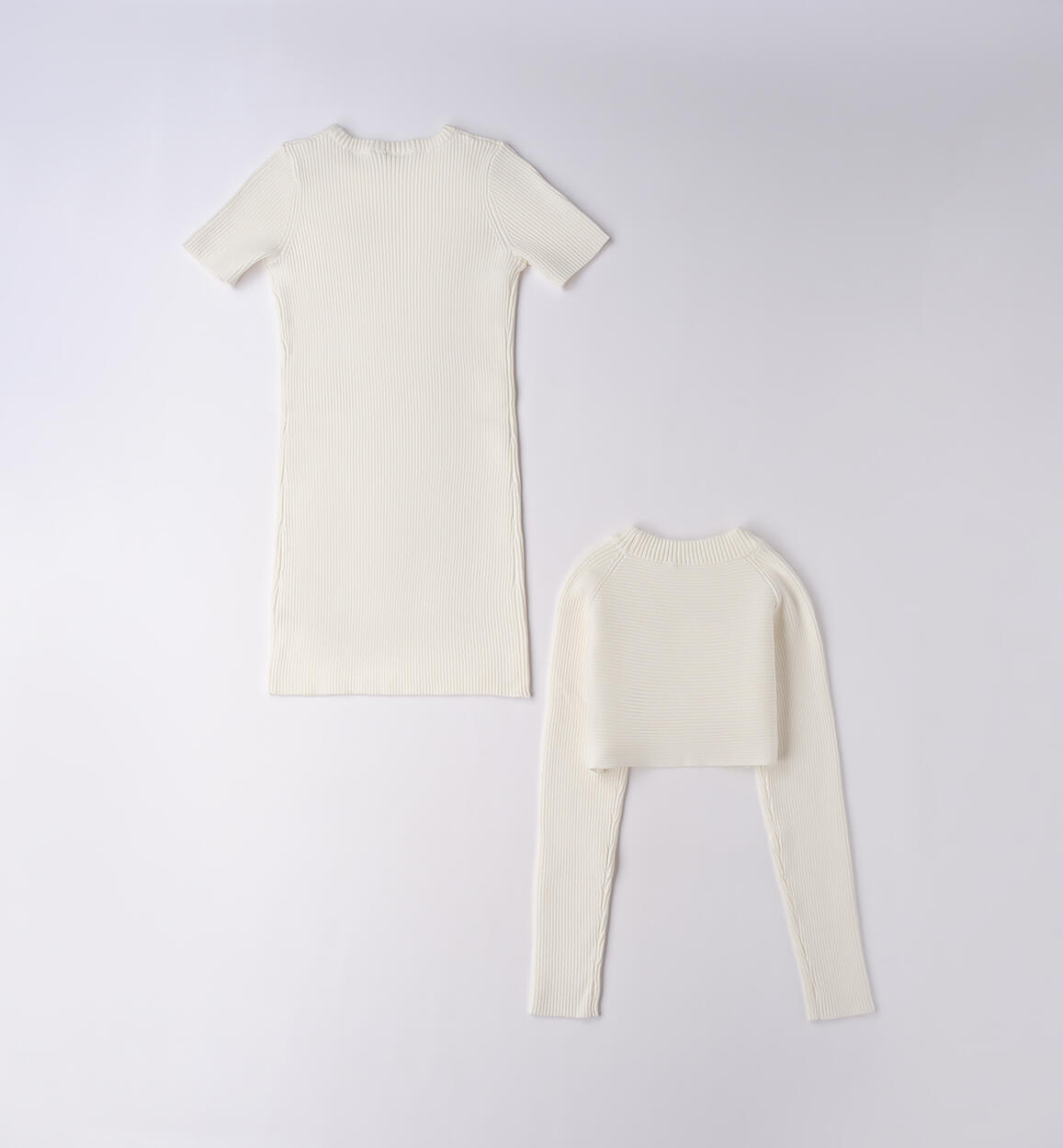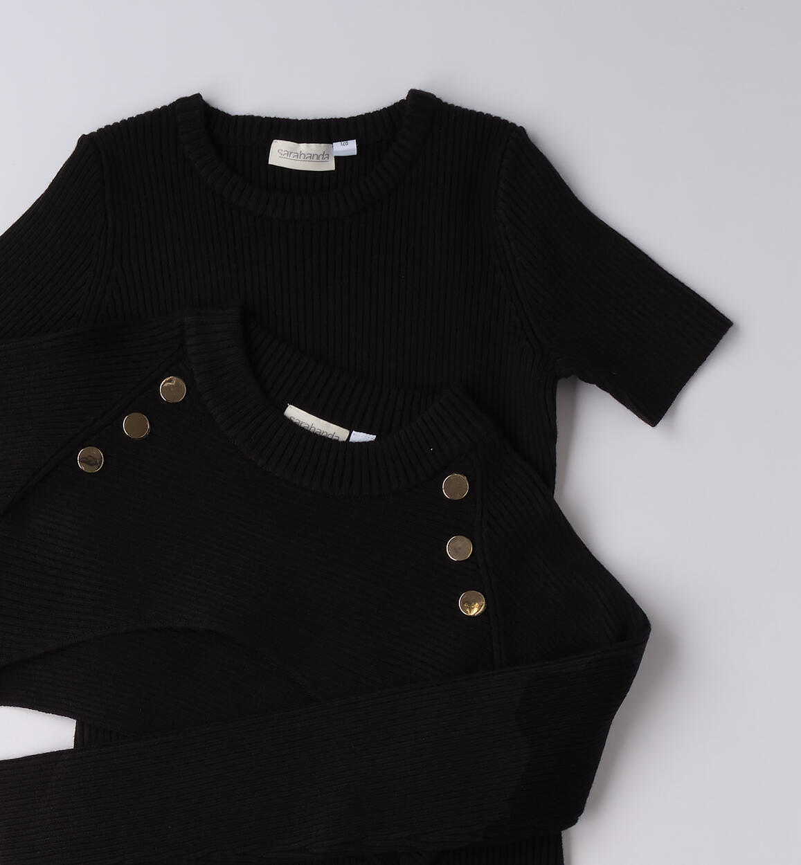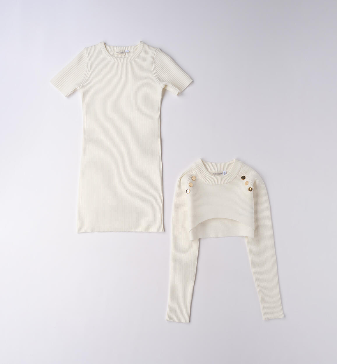 Abito mezza manica per ragazza Sarabanda 8-16 anni realizzato in tricot. Lunghezza sopra al ginocchio. Maglioncino crop in abbinamento con bottoniComposizione