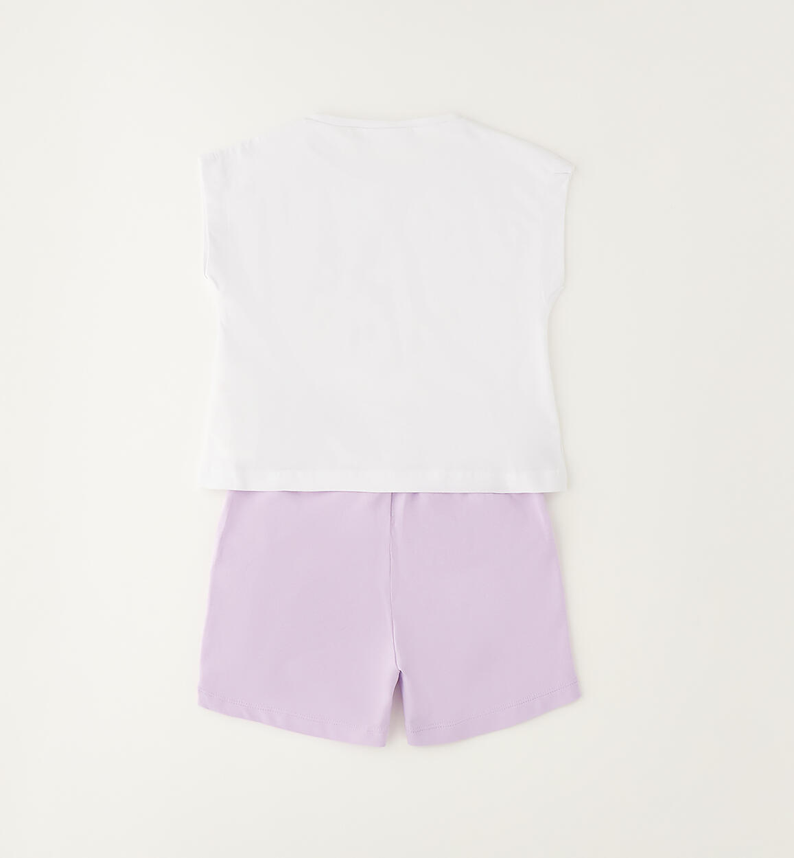 Completo estivo per bambina Sarabanda realizzato in jersey stretch di cotone. T-shirt con stampa farfalle e shorts con elastico in vita e coulisse