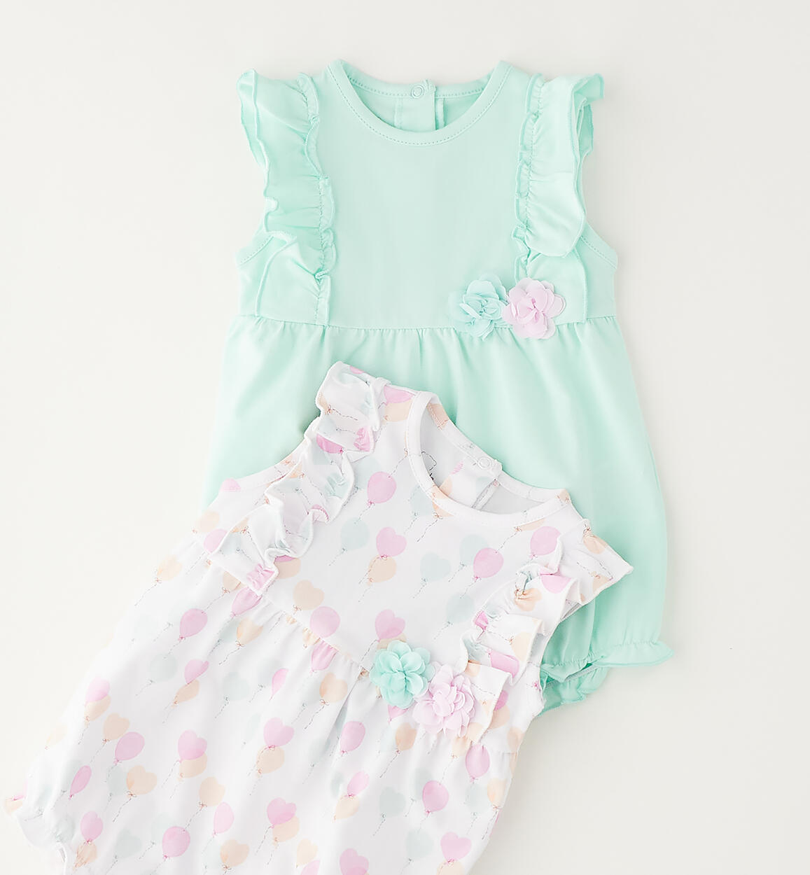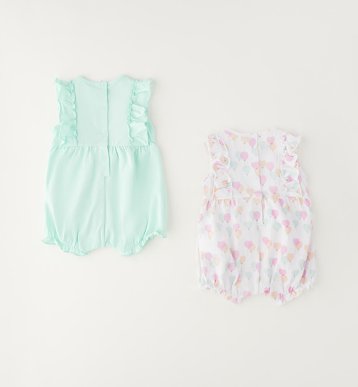 Set due pagliaccetti per neonata Minibanda realizzati in jersey stretch di cotone. Apertura dietro e nell'interno gamba con bottoni a pressione. Scegliendo i nostri prodotti in cotone, sostieni l'impegno di Minibanda nella missione Better Cotton. La fornitura di questo prodotto avviene tramite un sistema di bilancio di massa e potrebbe non contenere Better Cotton. Leggi di più su bettercotton.org/massbalance