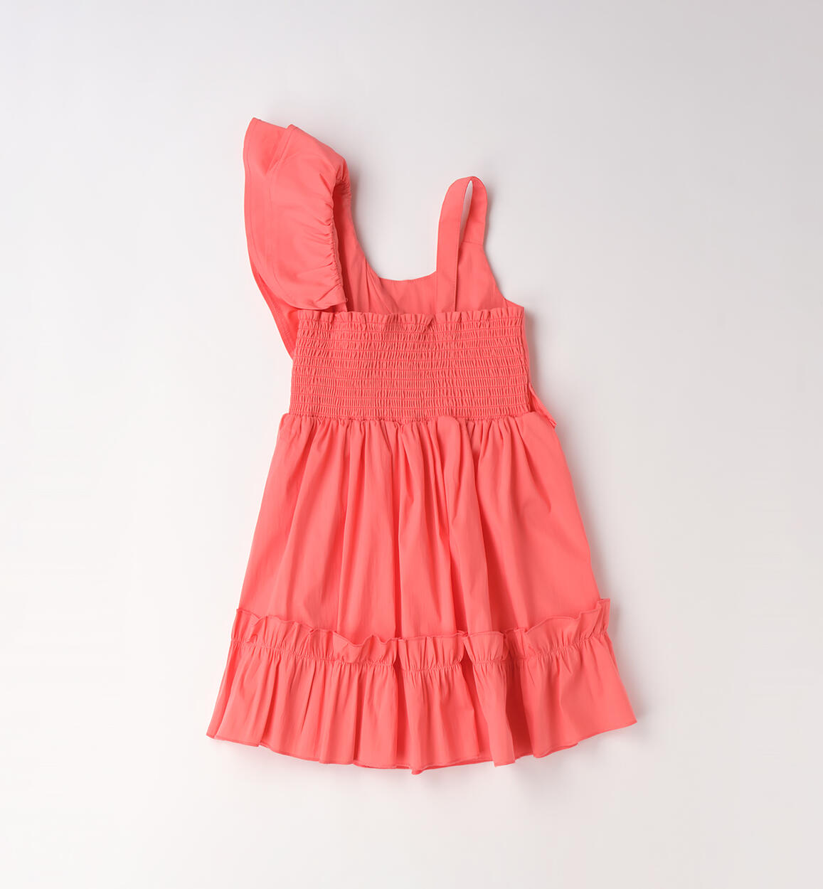Abito smanicato per bambina Sarabanda realizzato in popeline stretch di cotone. Modello a balze con piccolo logo di strass. Lunghezza sopra al ginocchioComposizione
