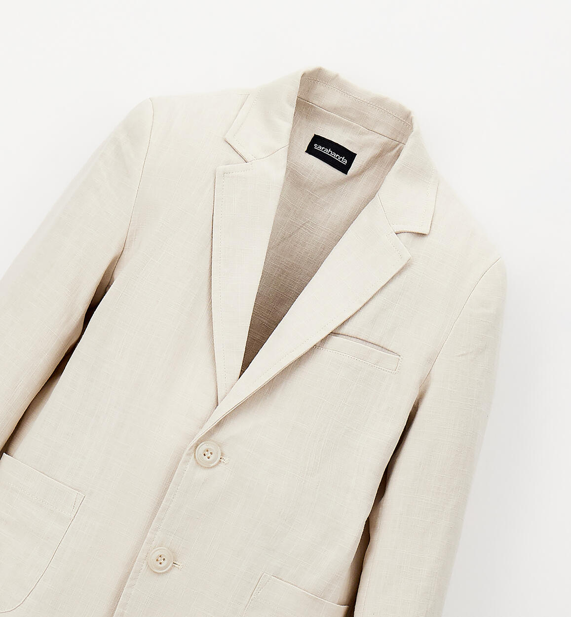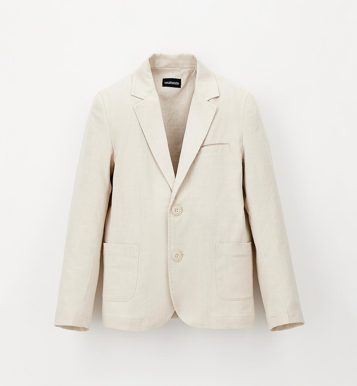 Giacca per ragazzo Sarabanda realizzata in lino e cotone. Apertura con bottoni. Il modello fa parte della collezione Sarabanda Premium pensata per vestire le cerimonie più formaliComposizione